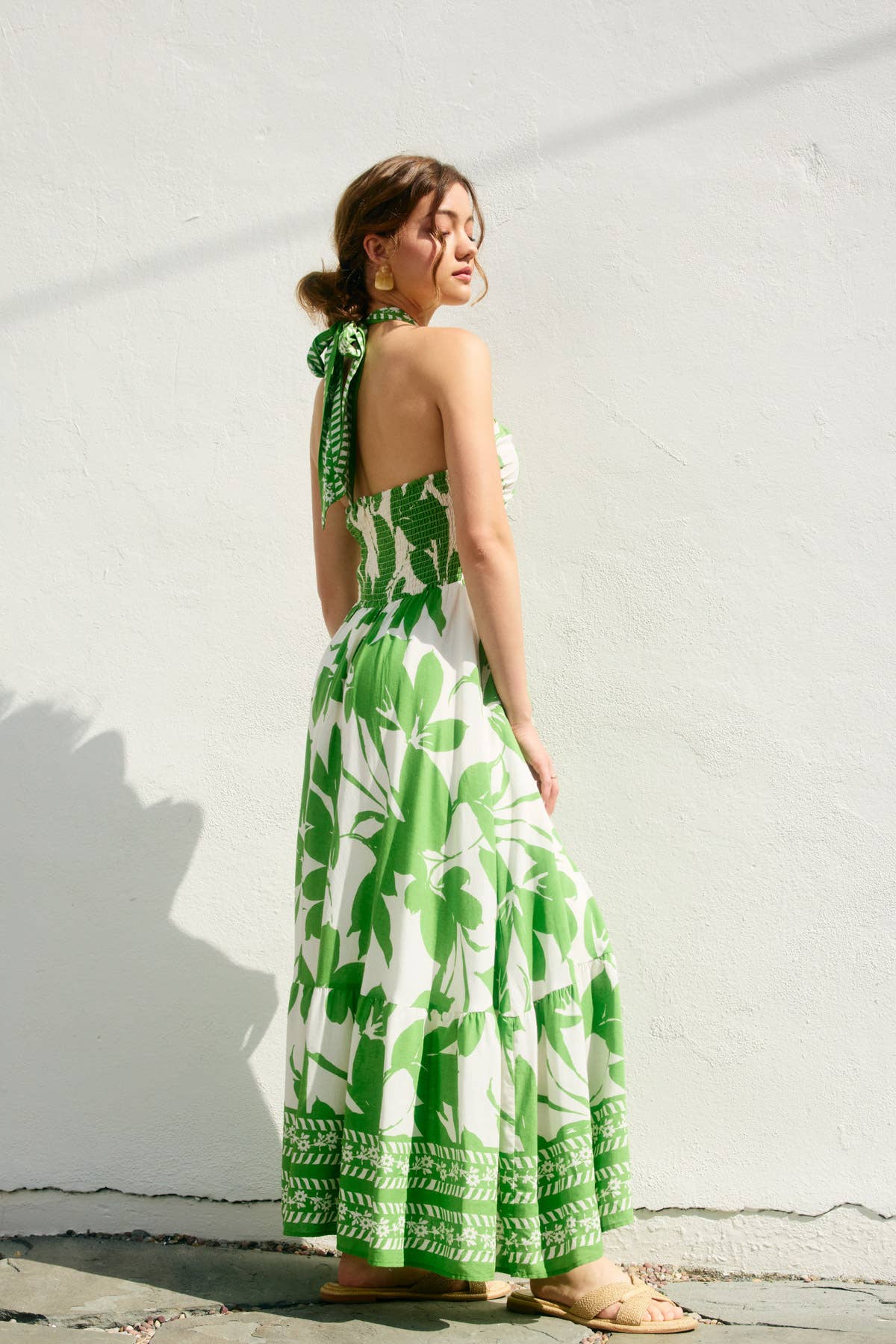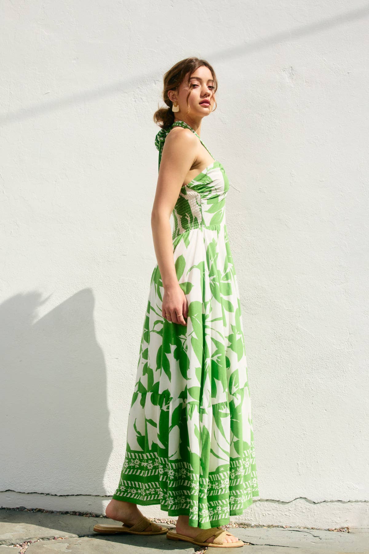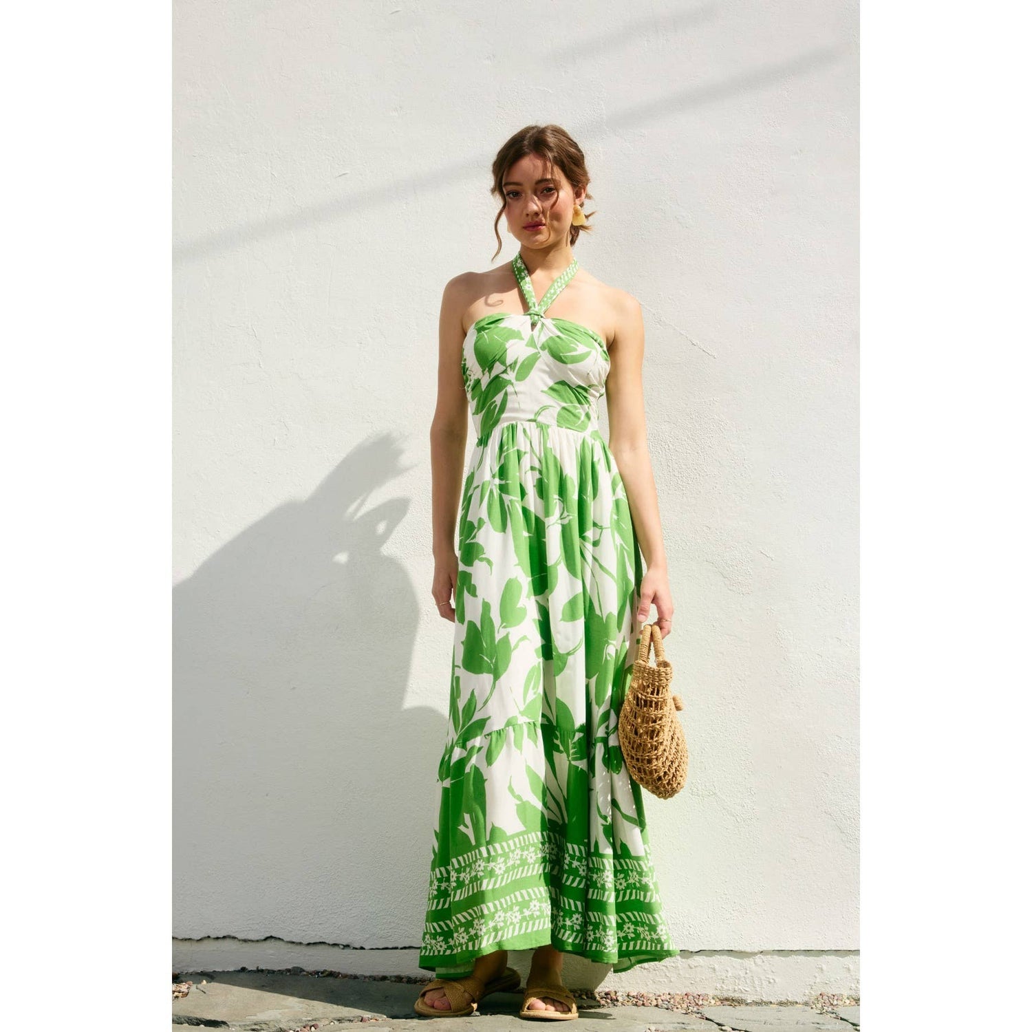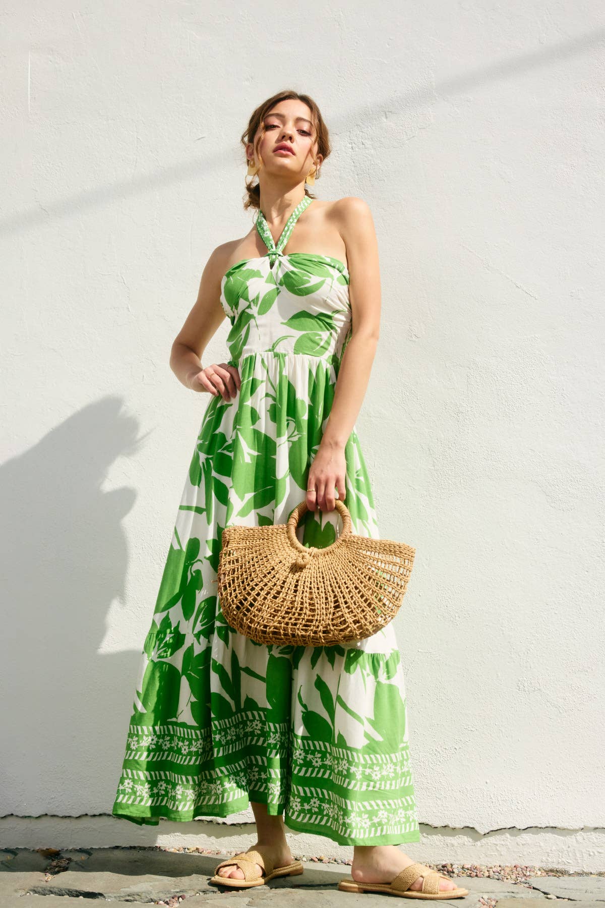 Bali Summer Halter Neck Tiered Dress: PARADISE GREEN / FD9958-P1868_1