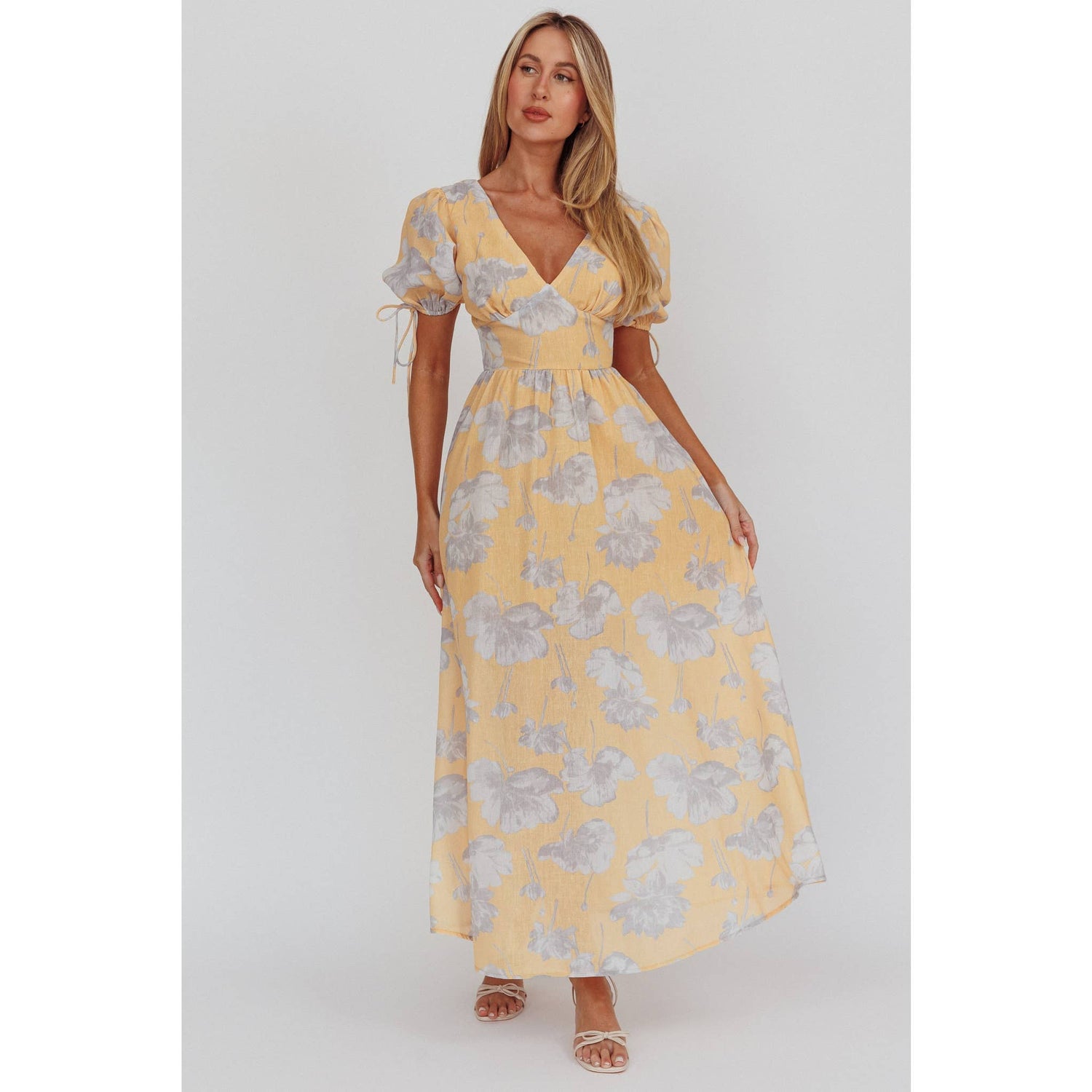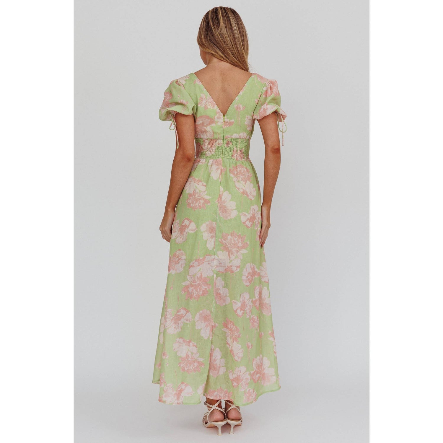 BELL SLEEVE FLORAL MAXI DRESS: GREEN / SR1253J