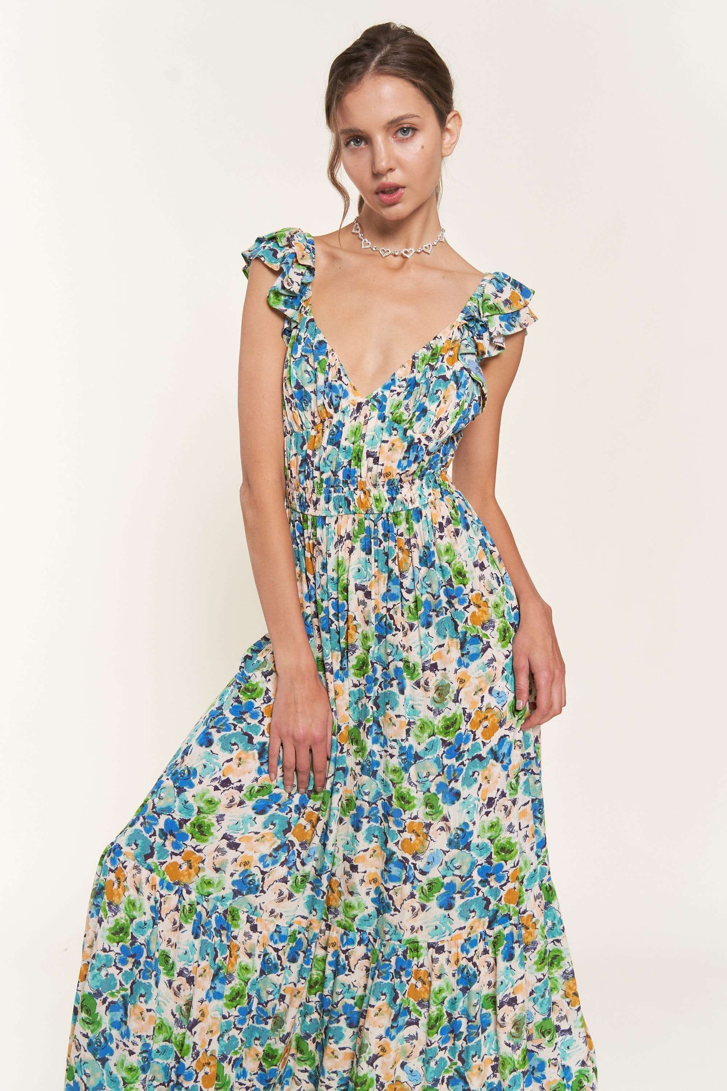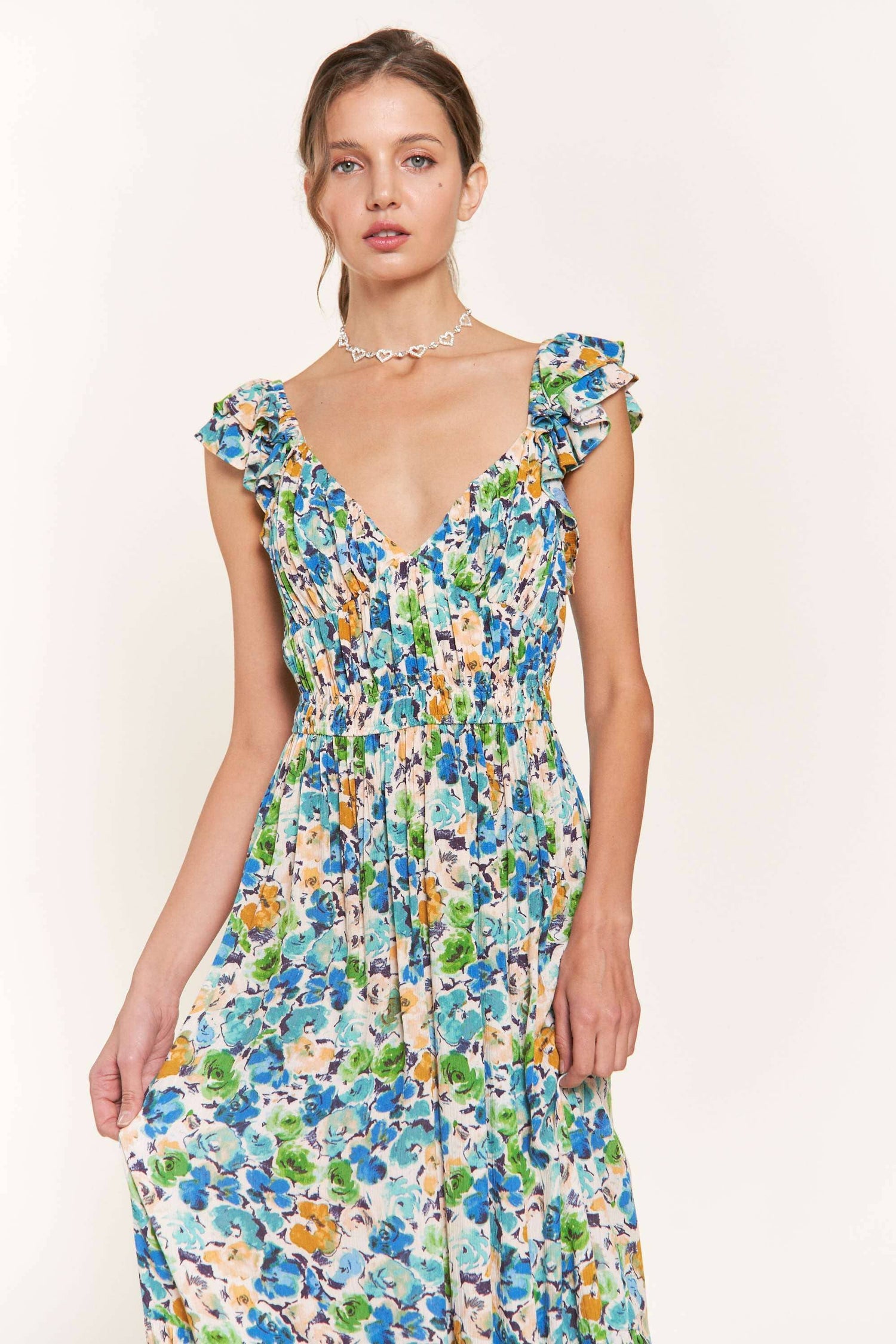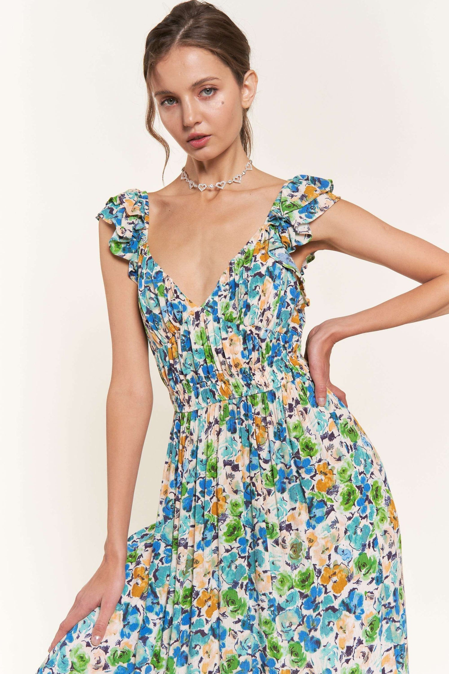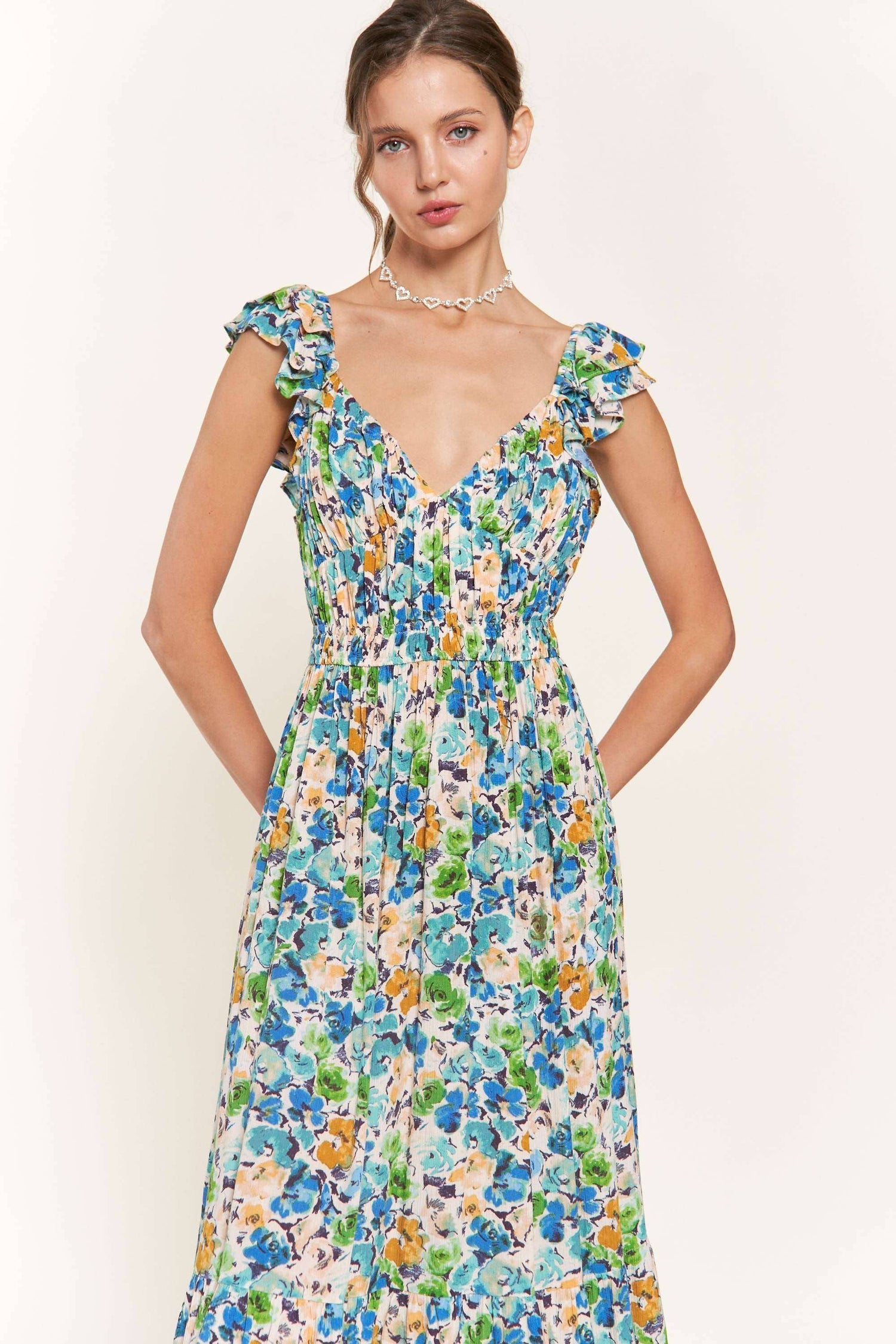 Blue Flower Midi Dress: D9742 / Blue Flower