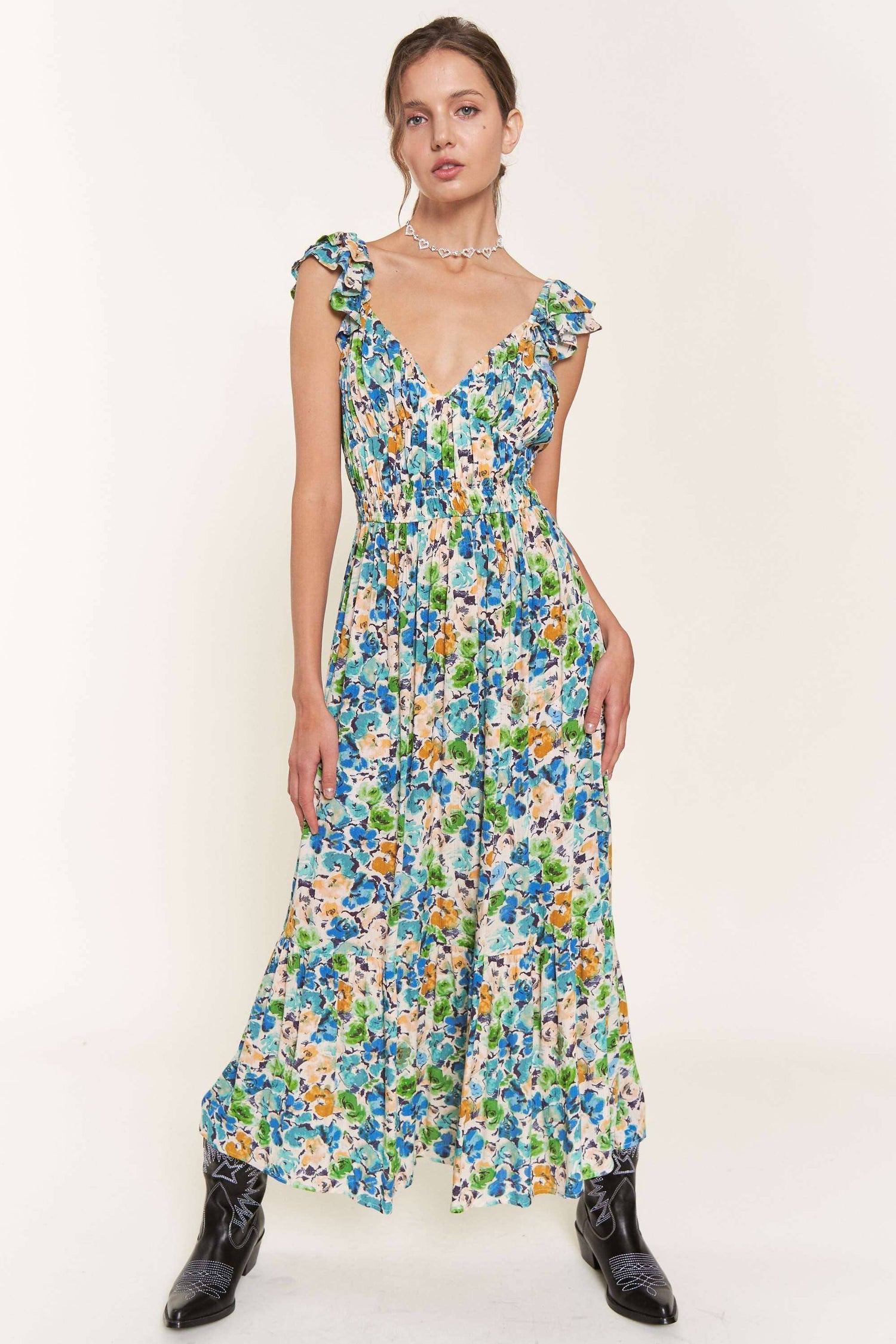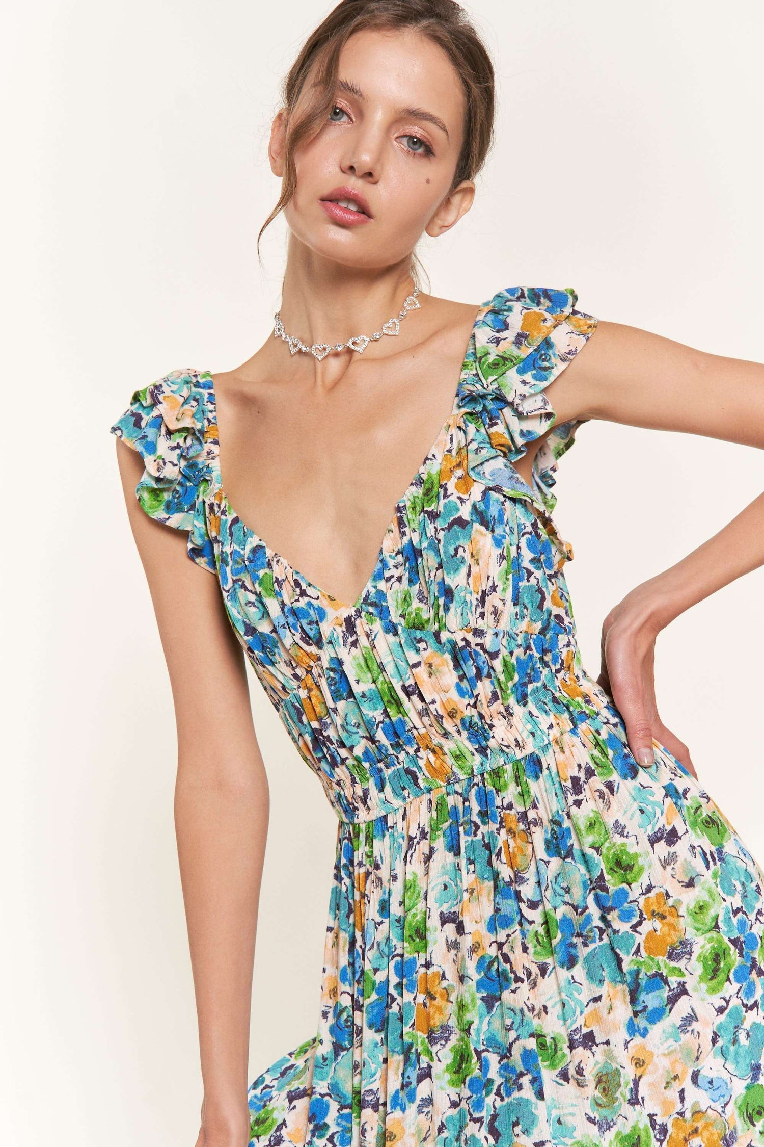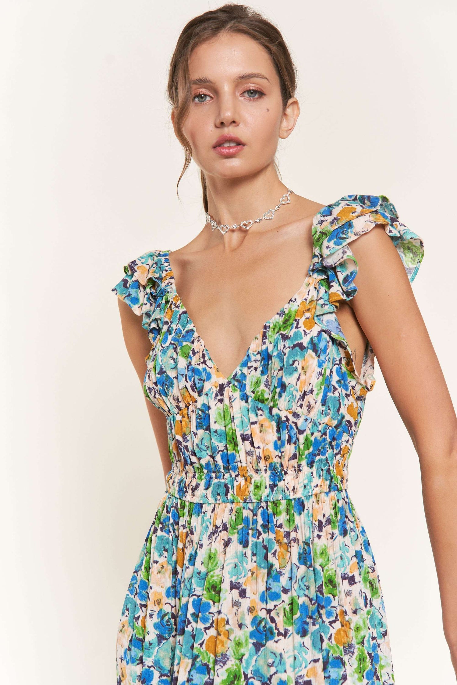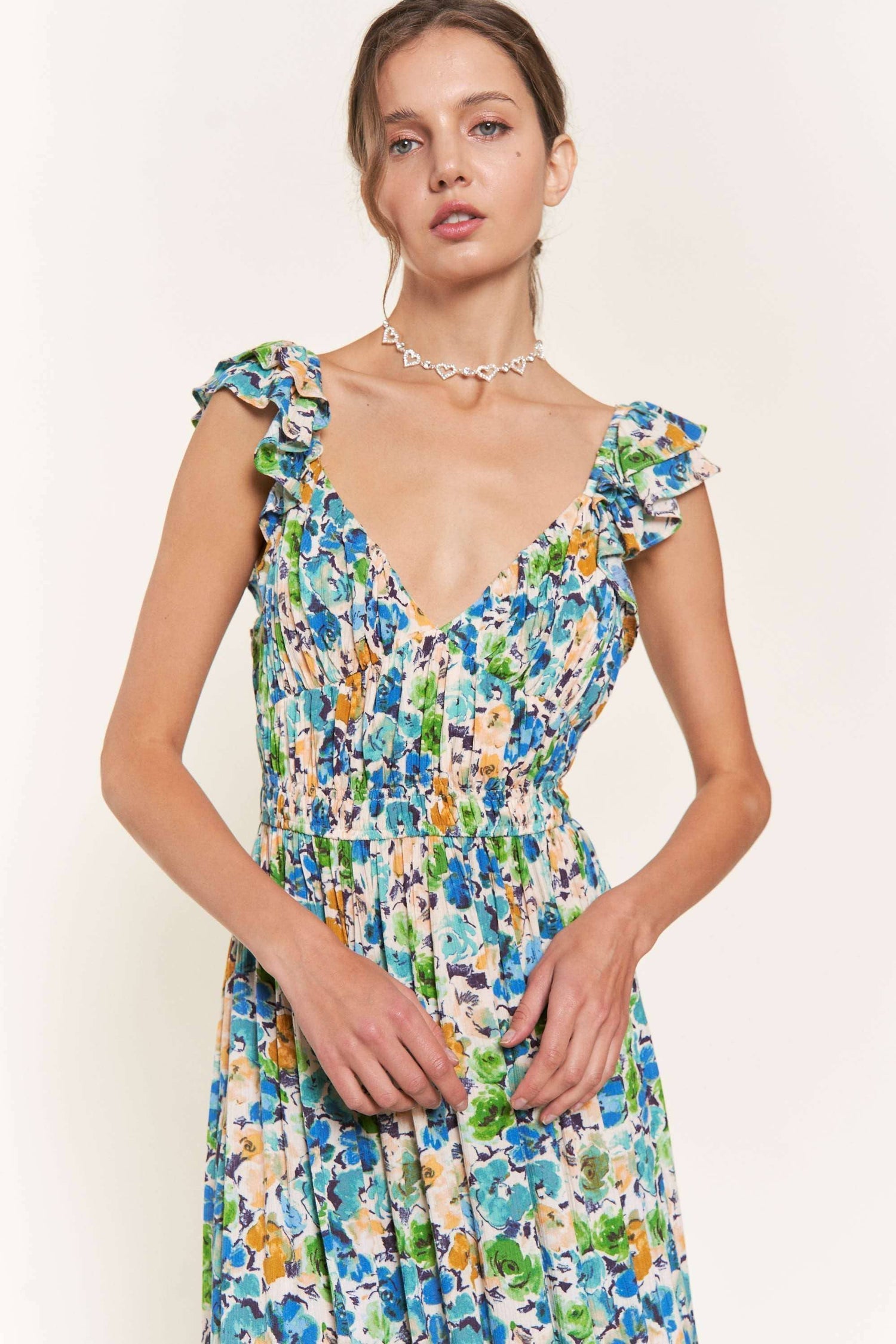 Blue Flower Midi Dress: D9742 / Blue Flower