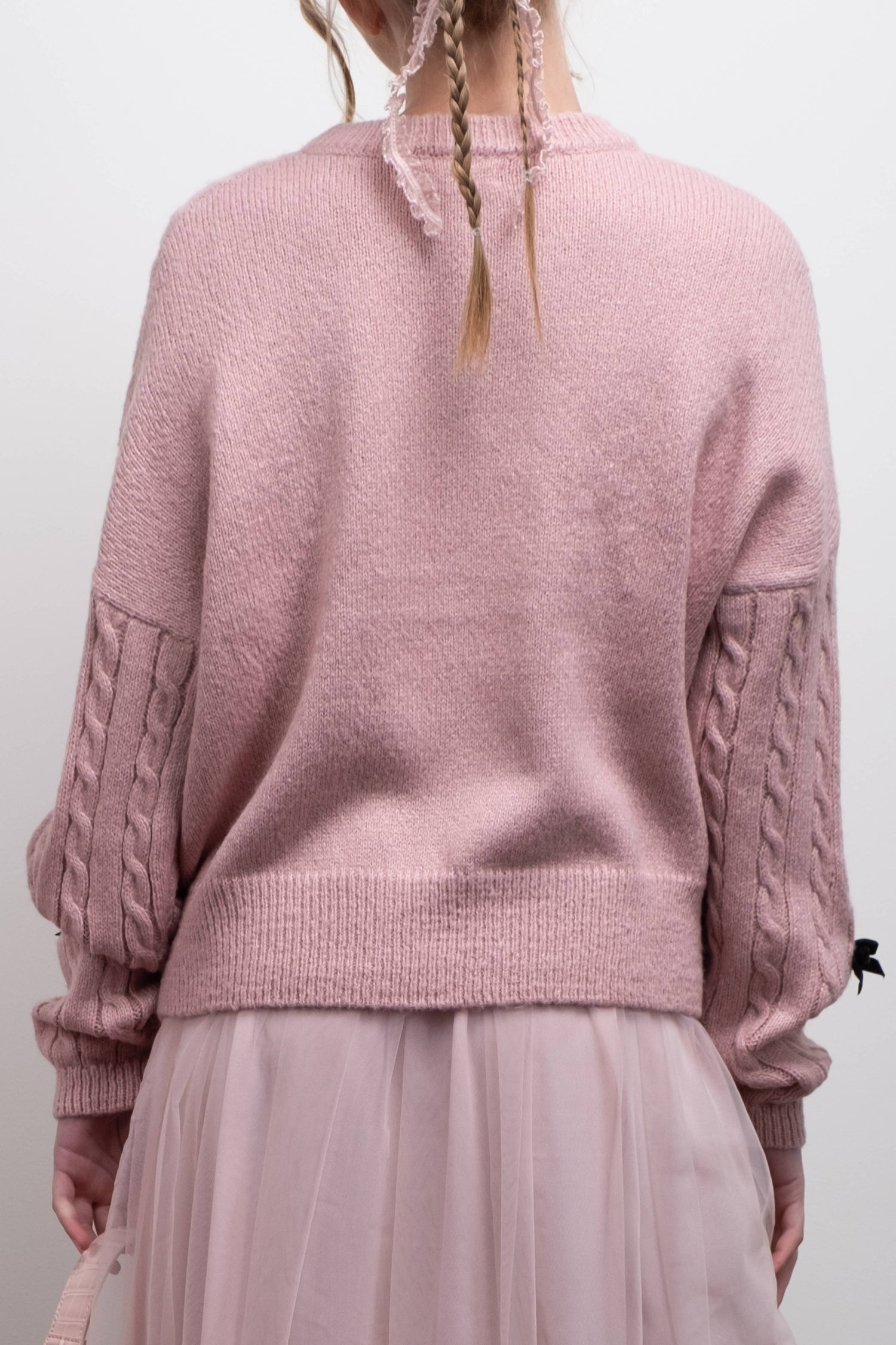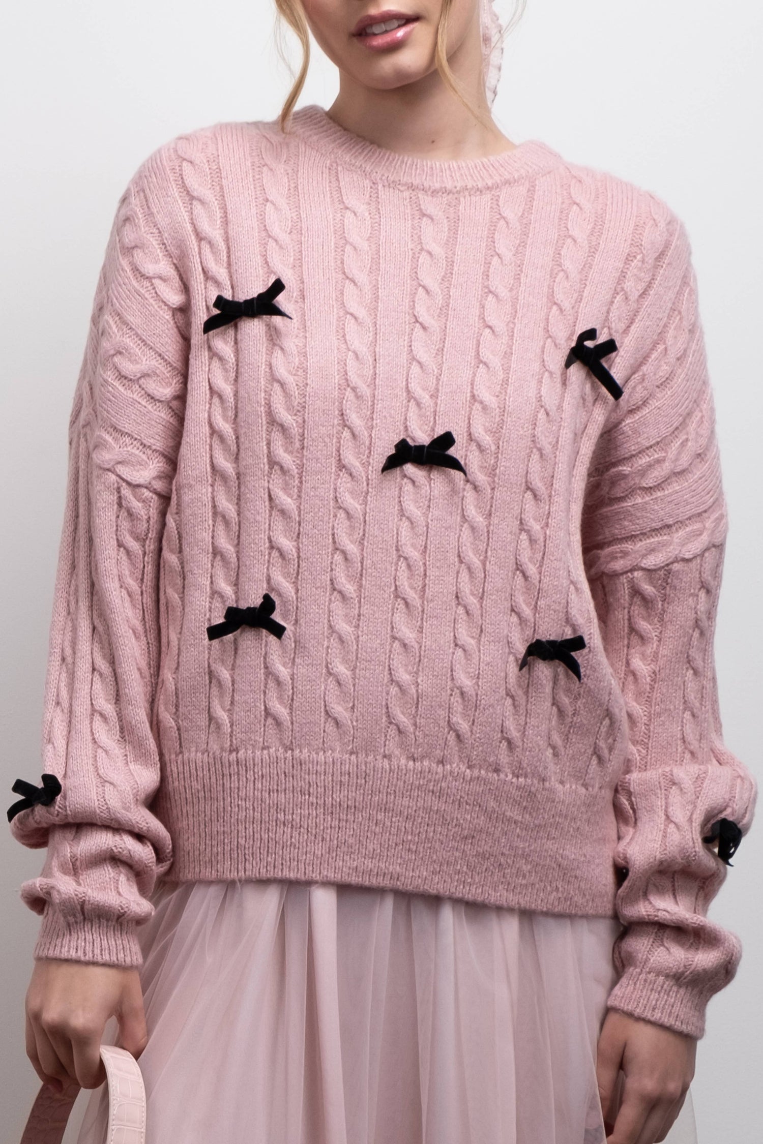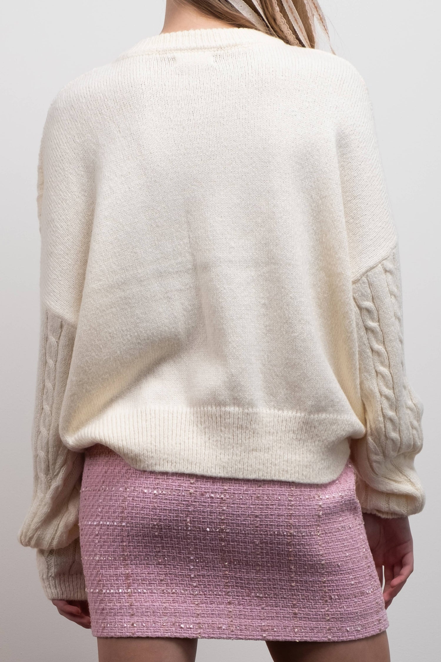 BOW DETAIL CABLE KNIT PULLOVER SWEATER: IVORY CR2409_IVORY