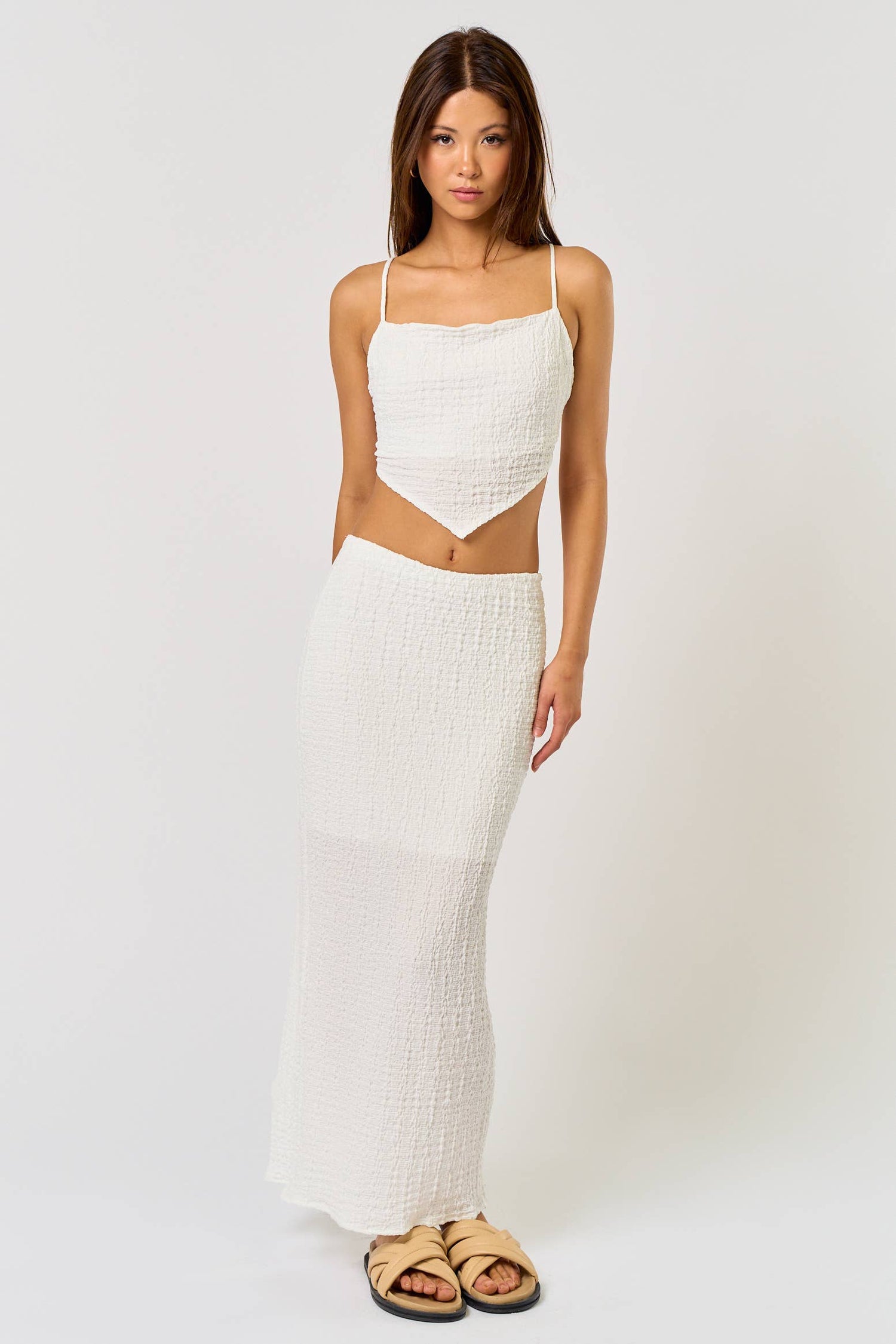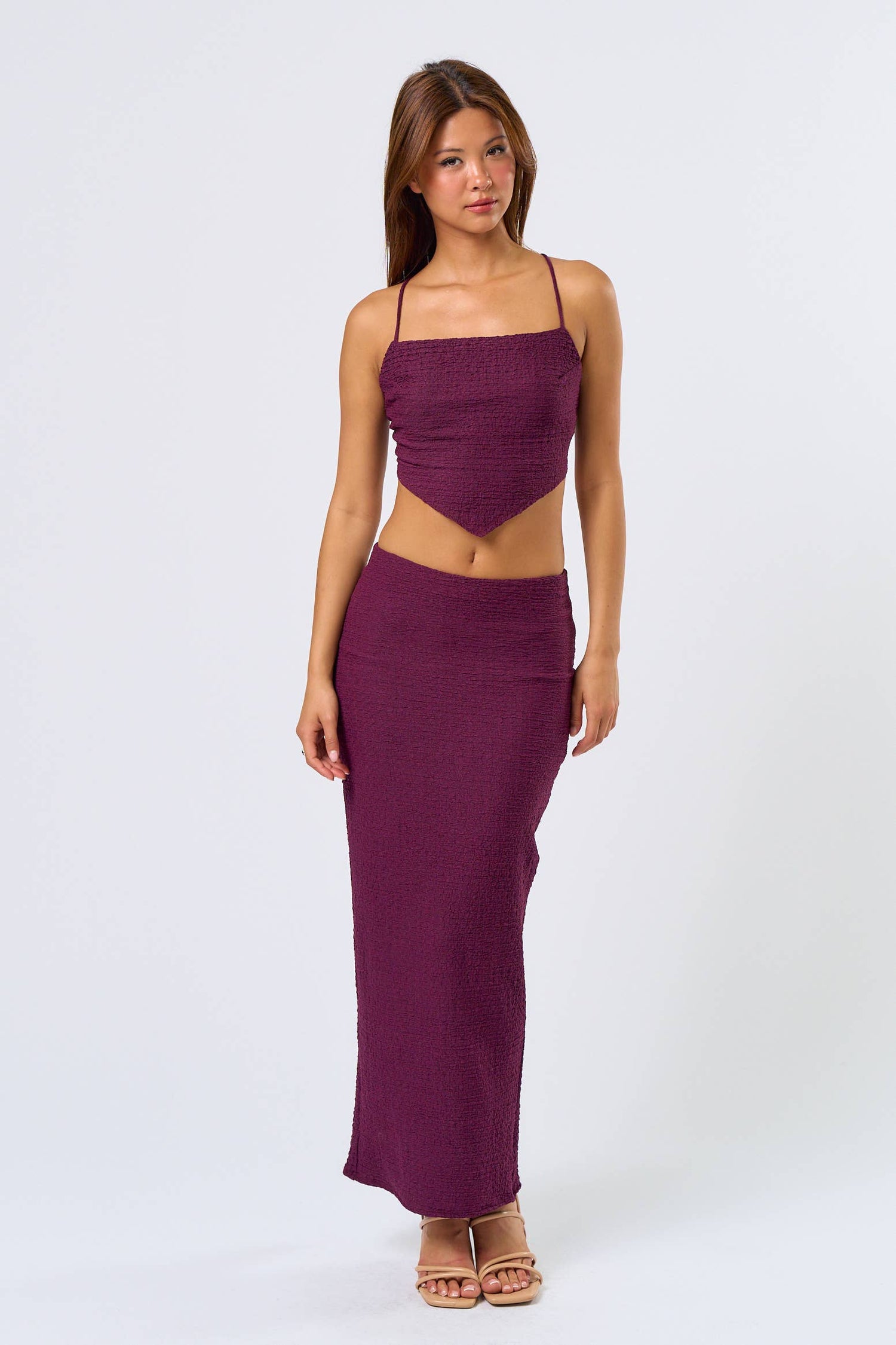 Tags: Maxi Skirt Sets, Spaghetti Strap Tops, Cropped Tops, Open Back Tops, Summer Fashion
