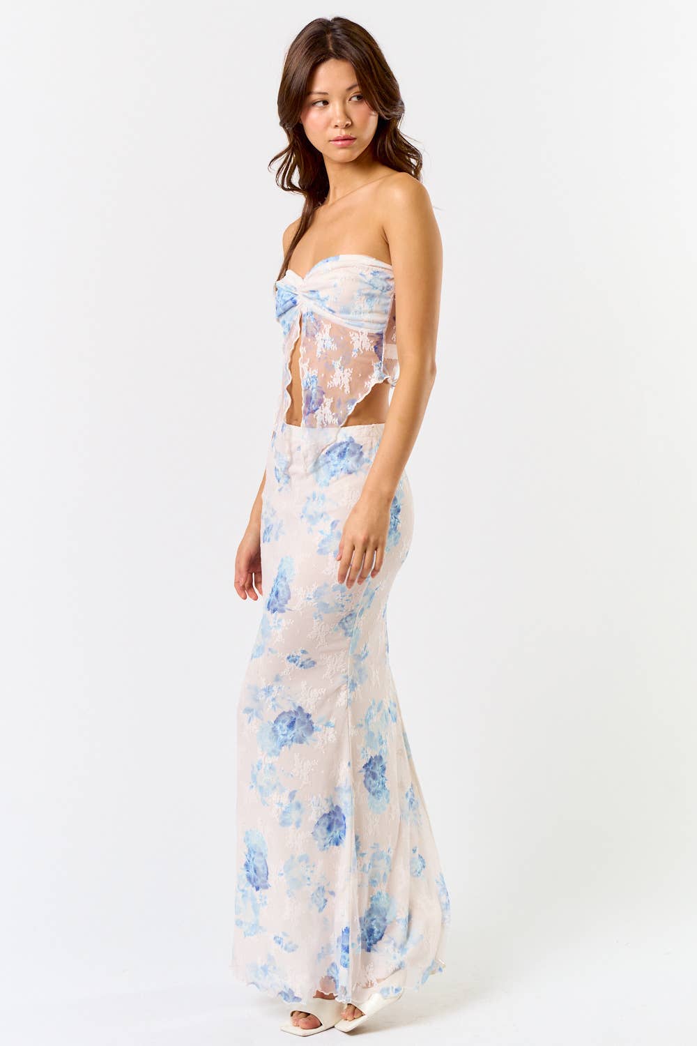 Lace Print Tube Top with Matching Maxi Skirt – Effortlessly Chic and Feminine