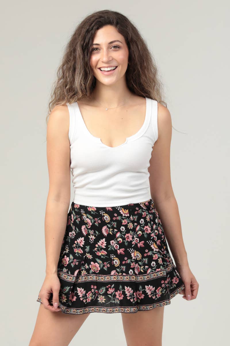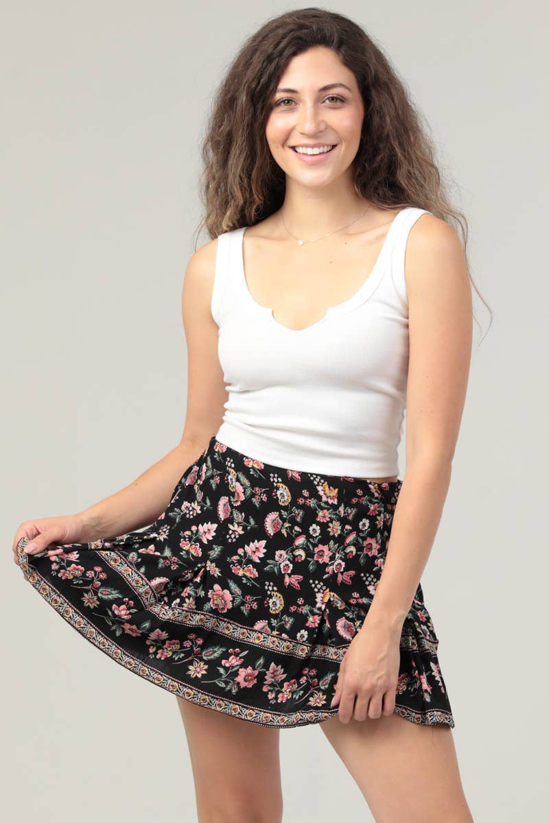 Show off your unique style with Angie's BS910-WB01 Printed Skort. This piece is not just another pair of shorts, it's a fusion of fashion-forward design and practicality. The skort offers the comfort of shorts with the aesthetic appeal of a skirt, making it a versatile addition to your wardrobe. With a print that reflects Angie's commitment to art and color, it's a true embodiment of our bohemian and vintage influences. Whether you're traveling the world or enjoying a day out, this skort is a must-have for the adventurous and romantic at heart.