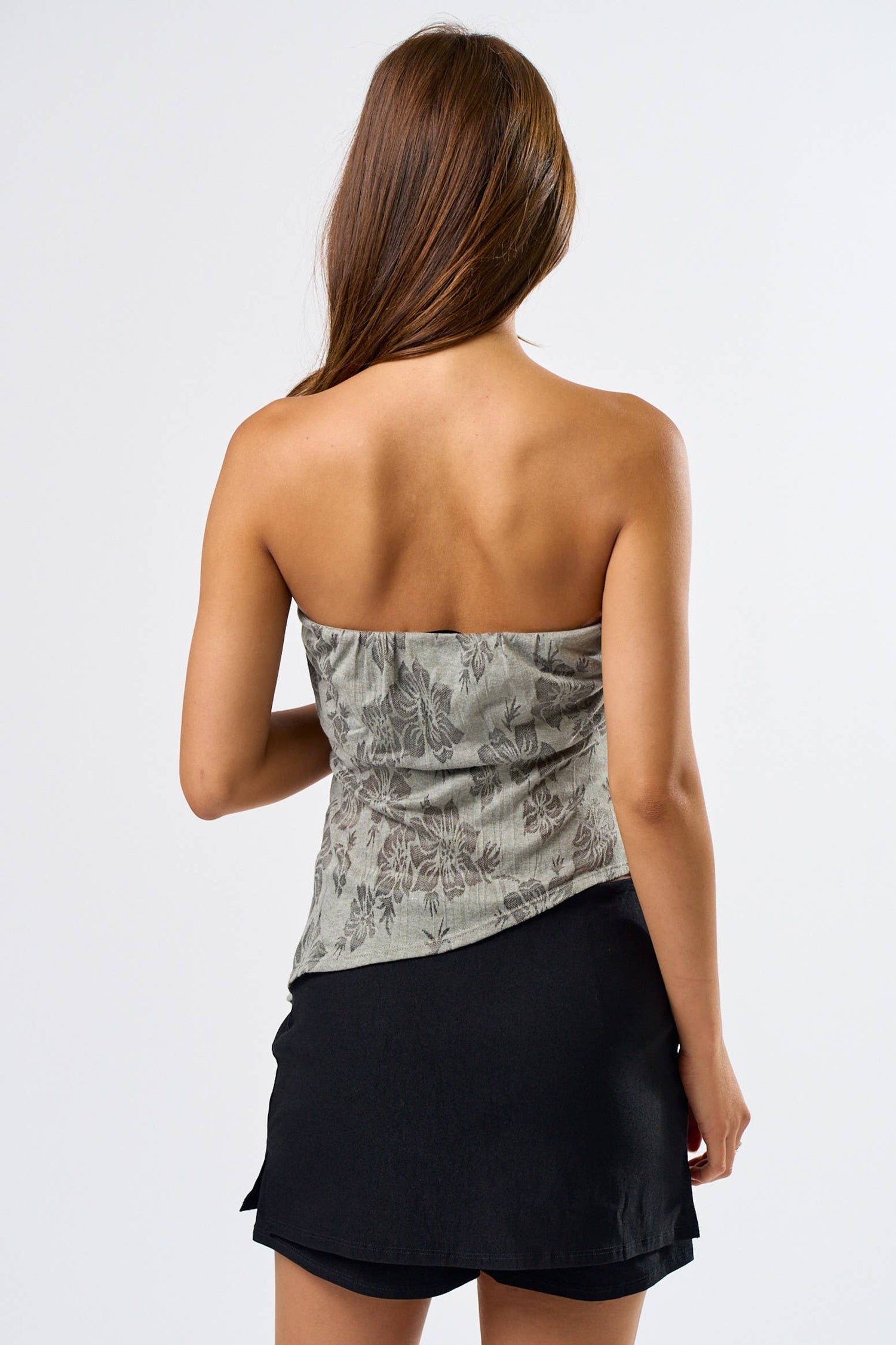 Tags: Tube Top, Asymmetrical Design, Boho Style, Denim Shorts Pairing