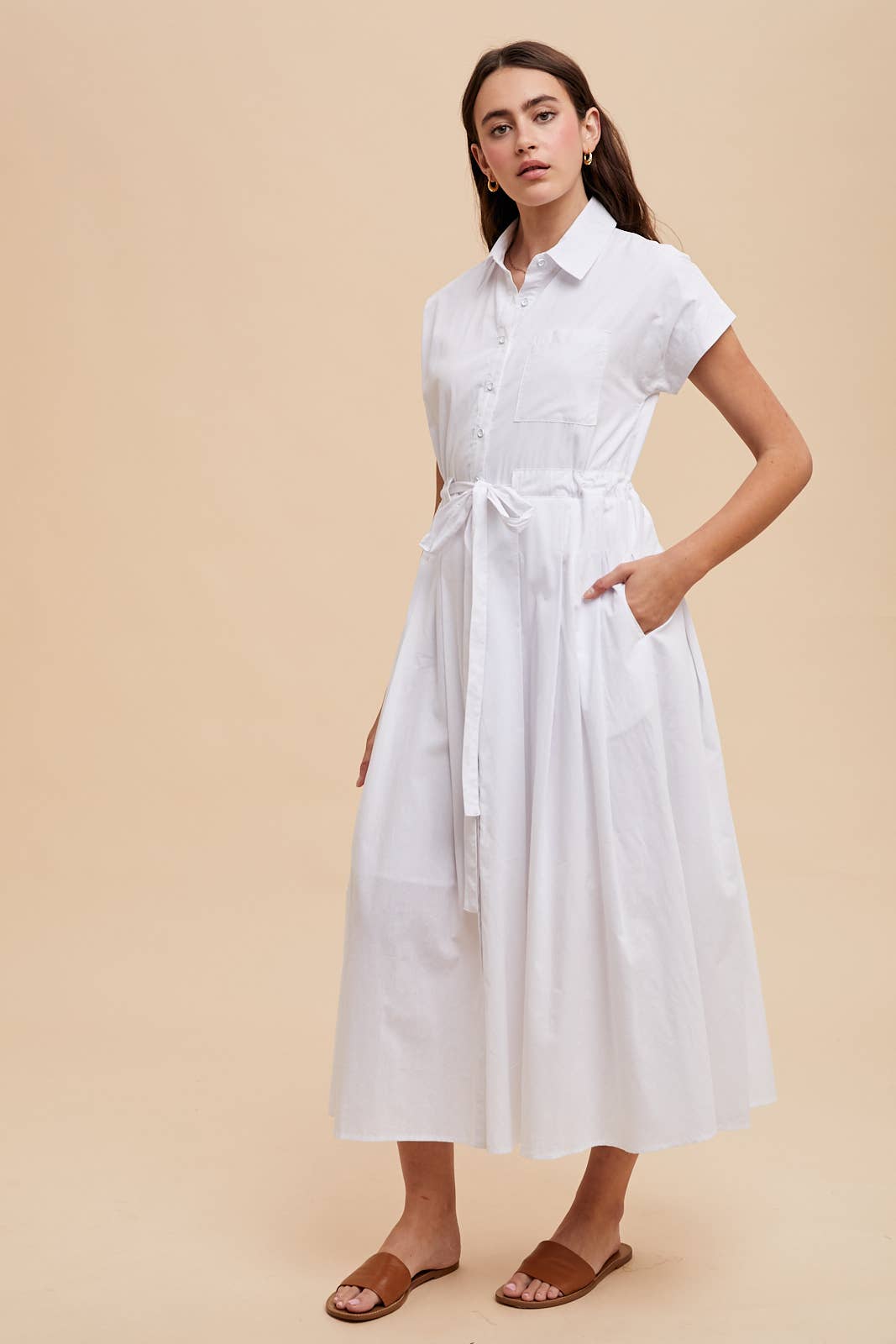 BUTTON DOWN SHIRT DRESS FEATURES: