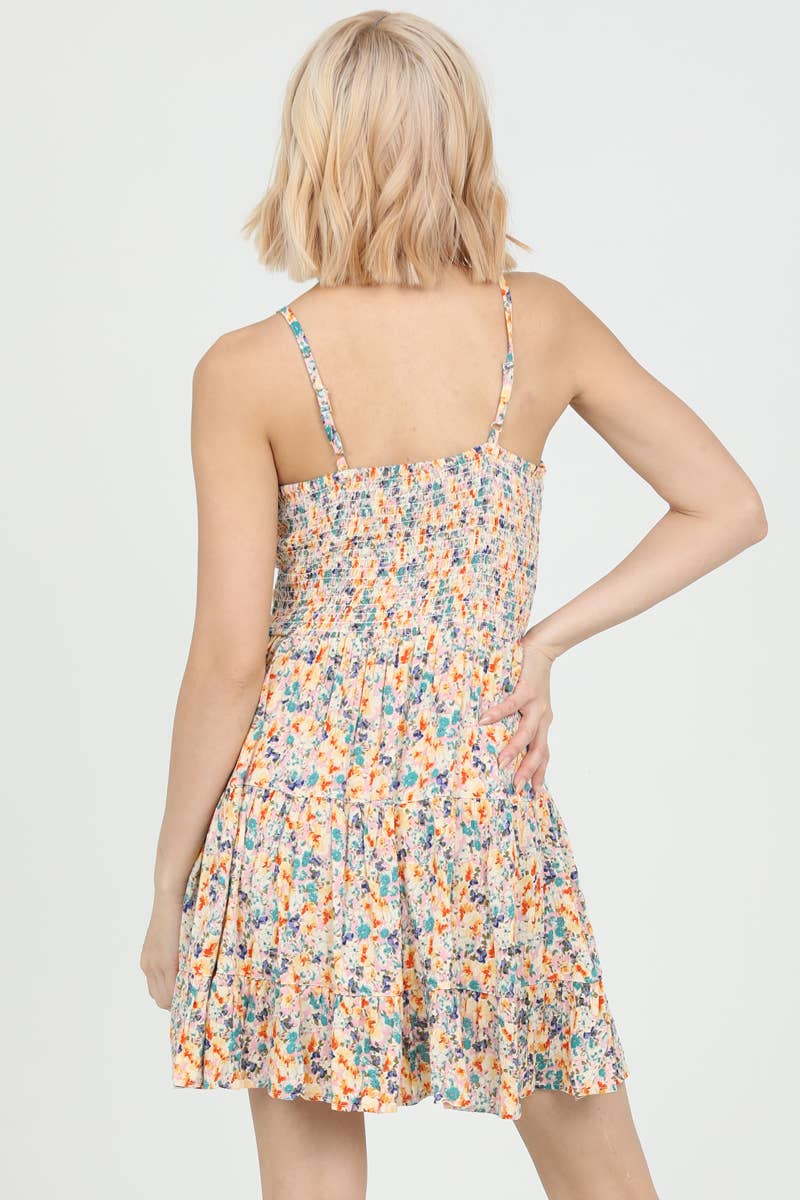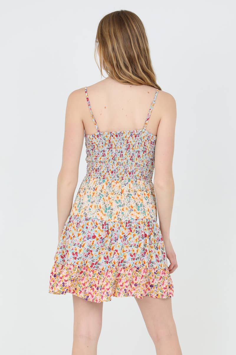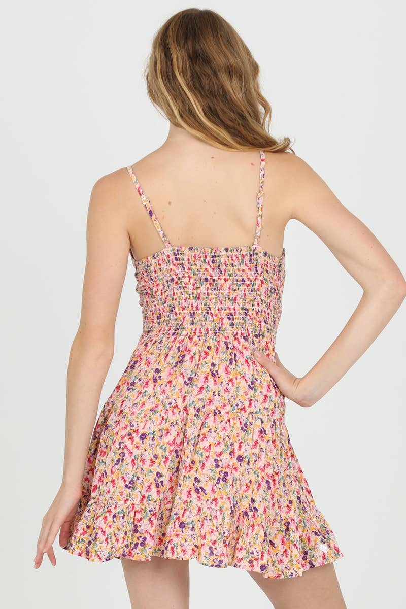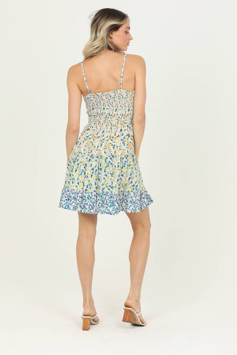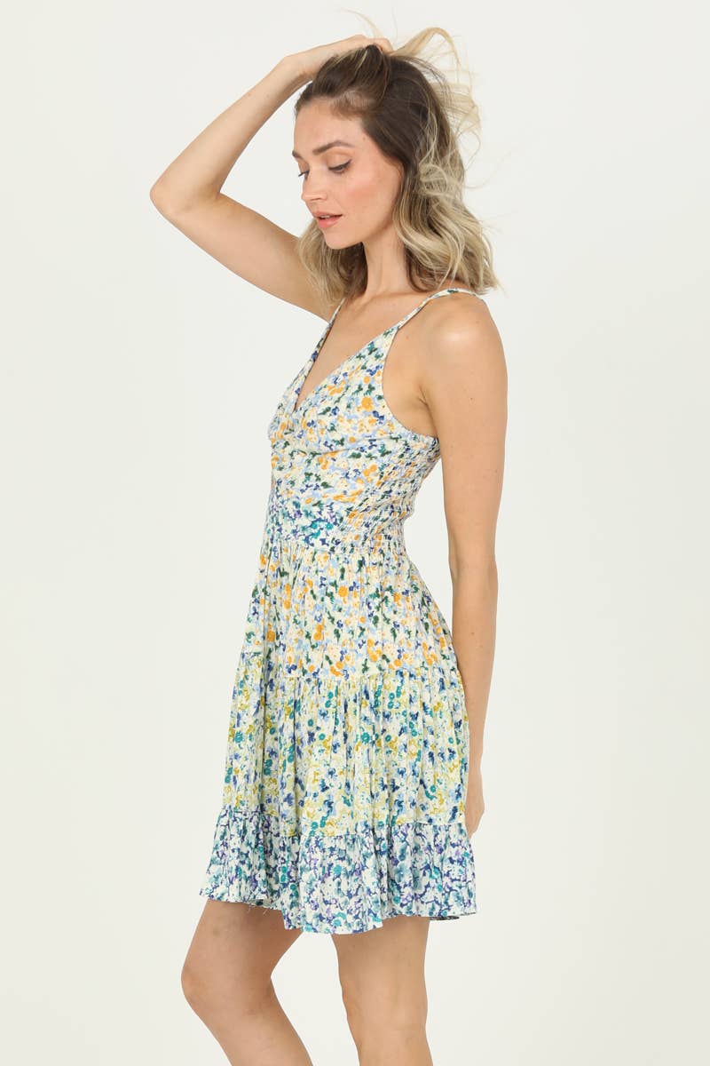 Introducing our multi-colored C4143-A814 V Neck Twist Front Sundress from Angie, a sundress that radiates bohemian charm and vibrant energy. Designed with a global lifestyle in mind, this junior fit dress with a v-neck is perfect for a day party or everyday wear. The floral pattern and mini length make it a standout piece in any wardrobe. This sleeveless dress is not just a piece of clothing, but a work of art brought to life by our designers who scour the globe for inspiration. Bold, poetic, and wearable, it's the perfect piece for the every girl.