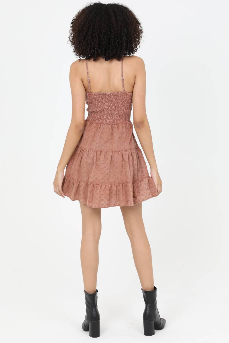 EYELET EMBROIDERED TWIST FRONT CUTOUT SUNDRESS
