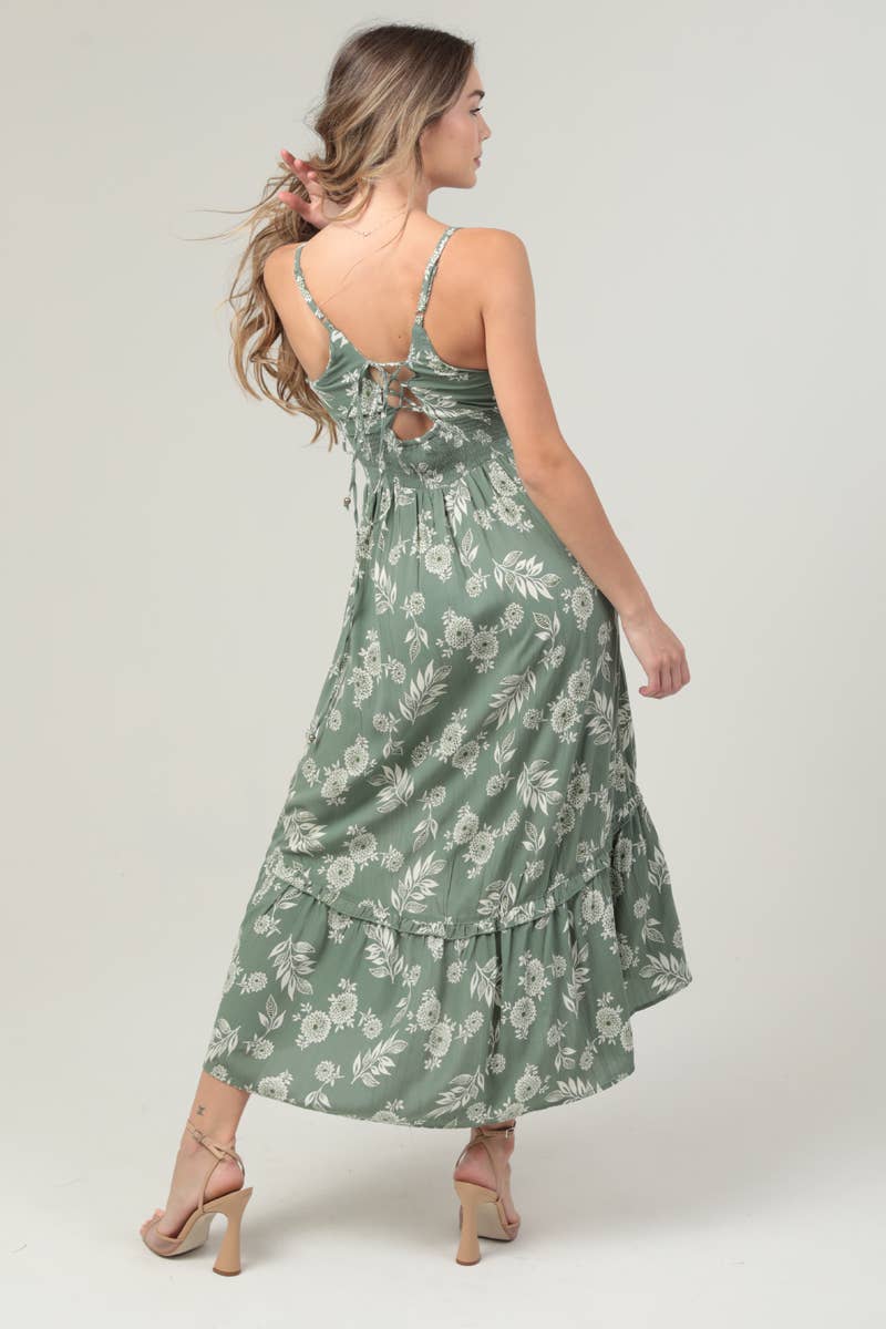 The C4729-W801 V Neck Lace Up Back Side Slit Maxi Dress from Angie captures the bohemian spirit. The V-neck design, lace-up back, and side slit create a stunning silhouette that's both romantic and boldly wearable. Inspired by global art, the dress is a testament to Angie's commitment to bringing clothing to life. Perfect for the 'every girl', this dress is a vibrant expression of individuality. Embrace your poetic side with Angie.