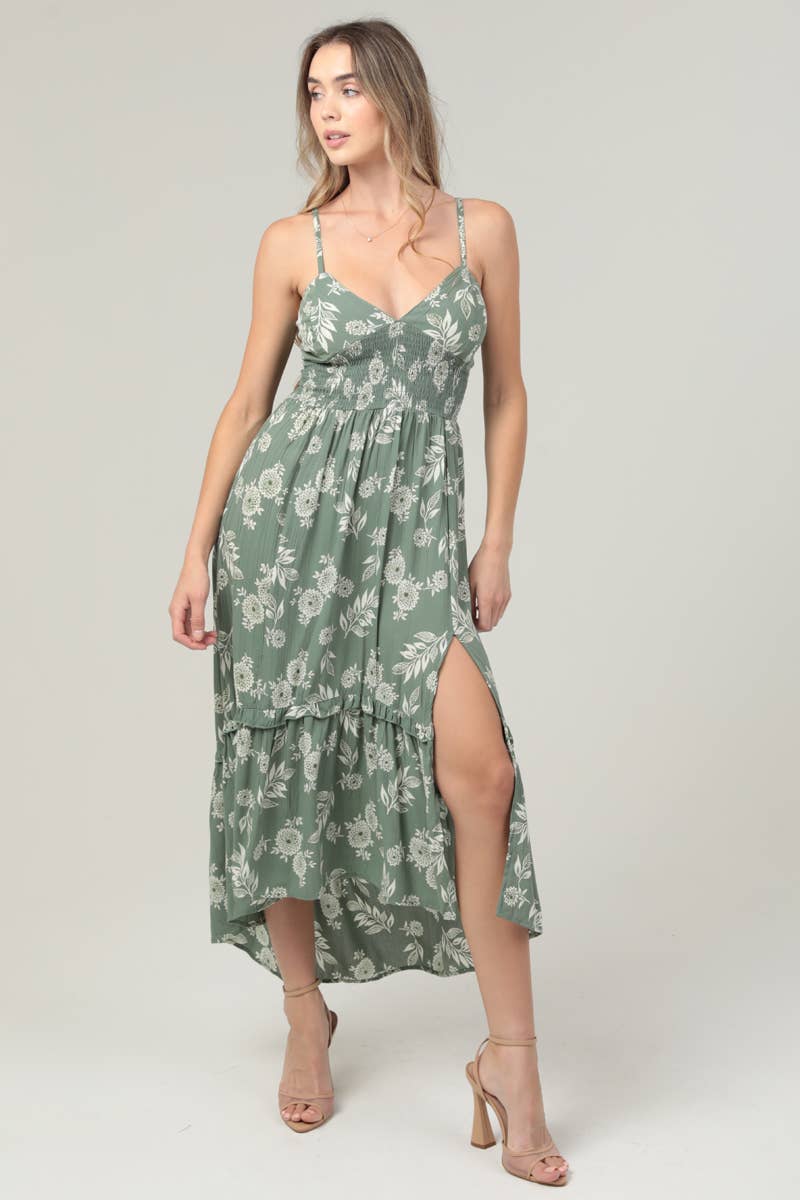 C4729-W801 V NECK LACE UP BACK SIDE SLIT MAXI DRESS