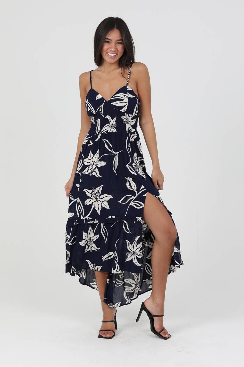 C4729-W921 LACE UP BACK DETAIL MIDI DRESS WITH SIDE SLIT