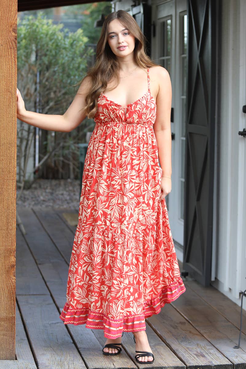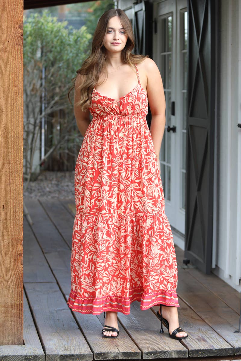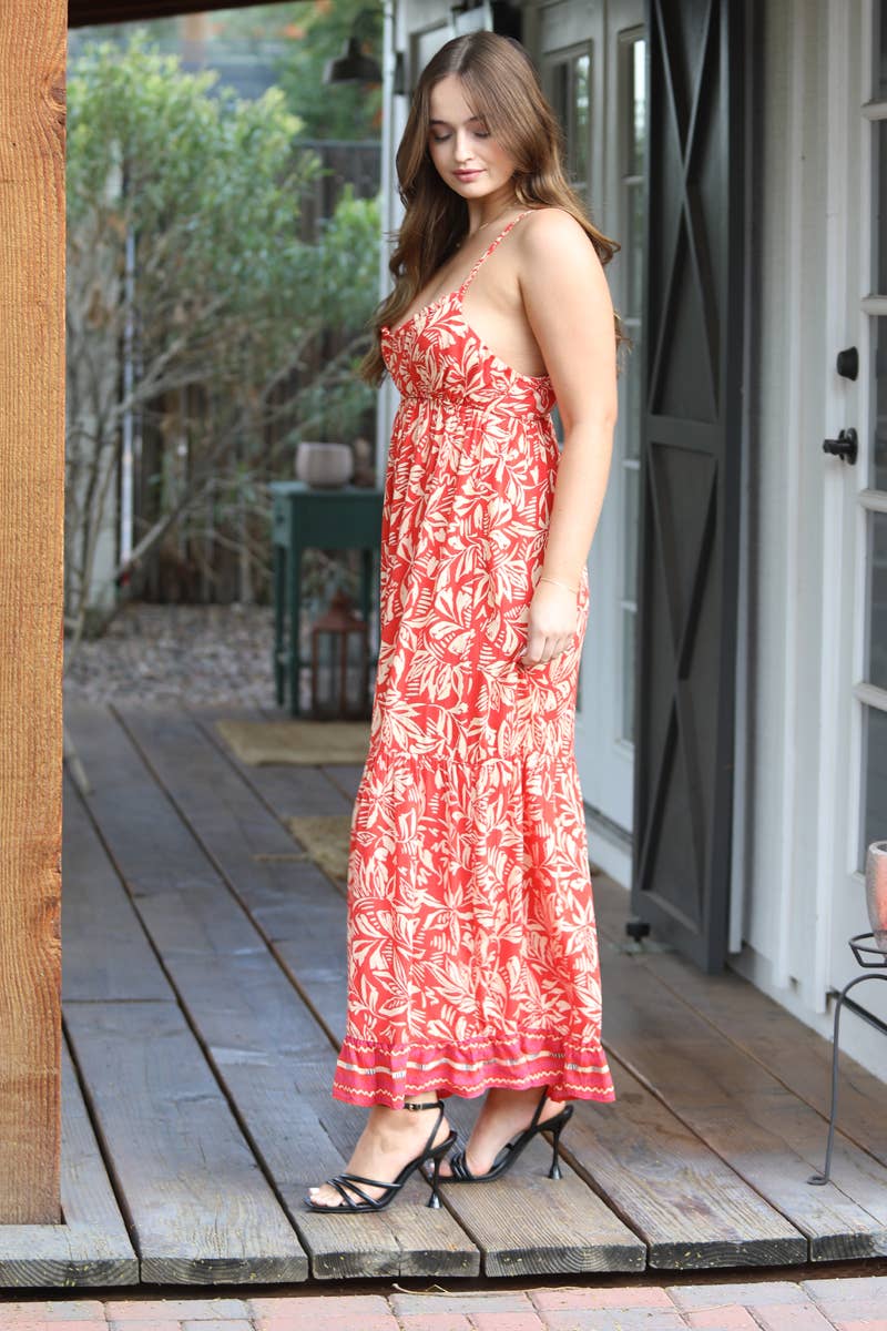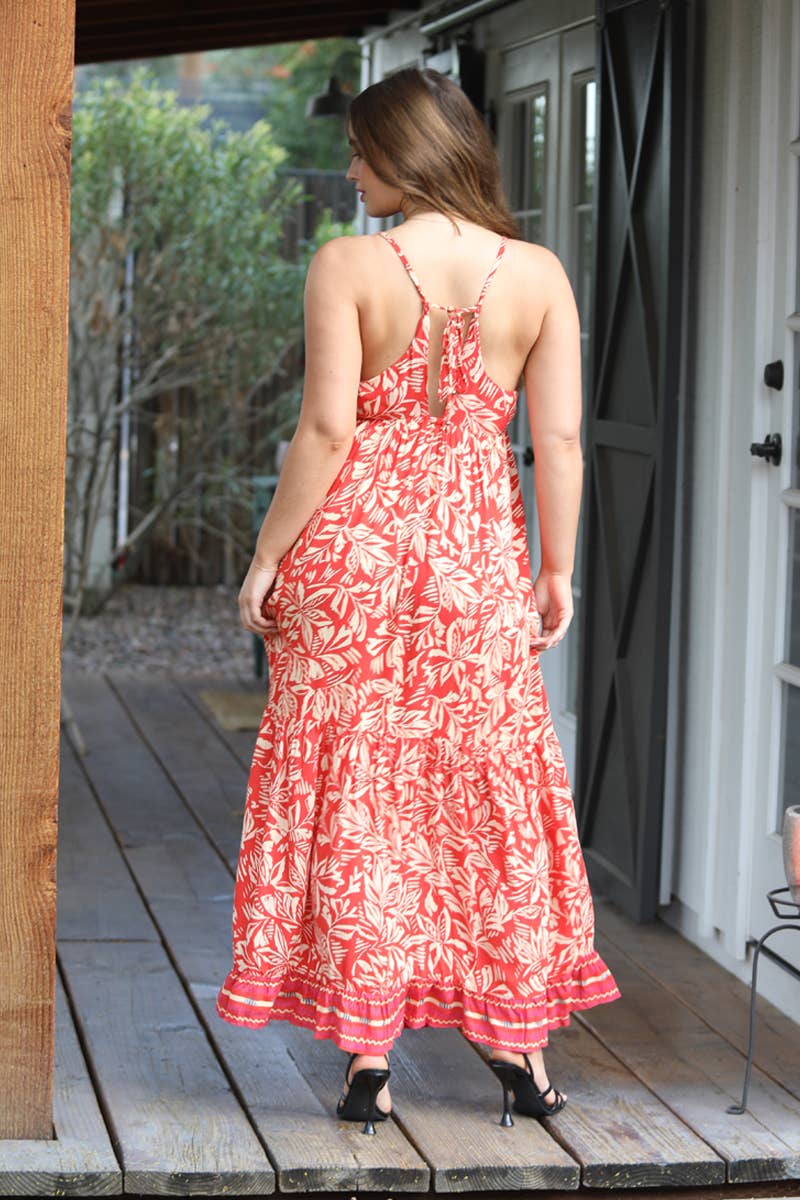 C4A27-A876 SPAGHETTI STRAP RACER BACK MAXI DRESS: Red