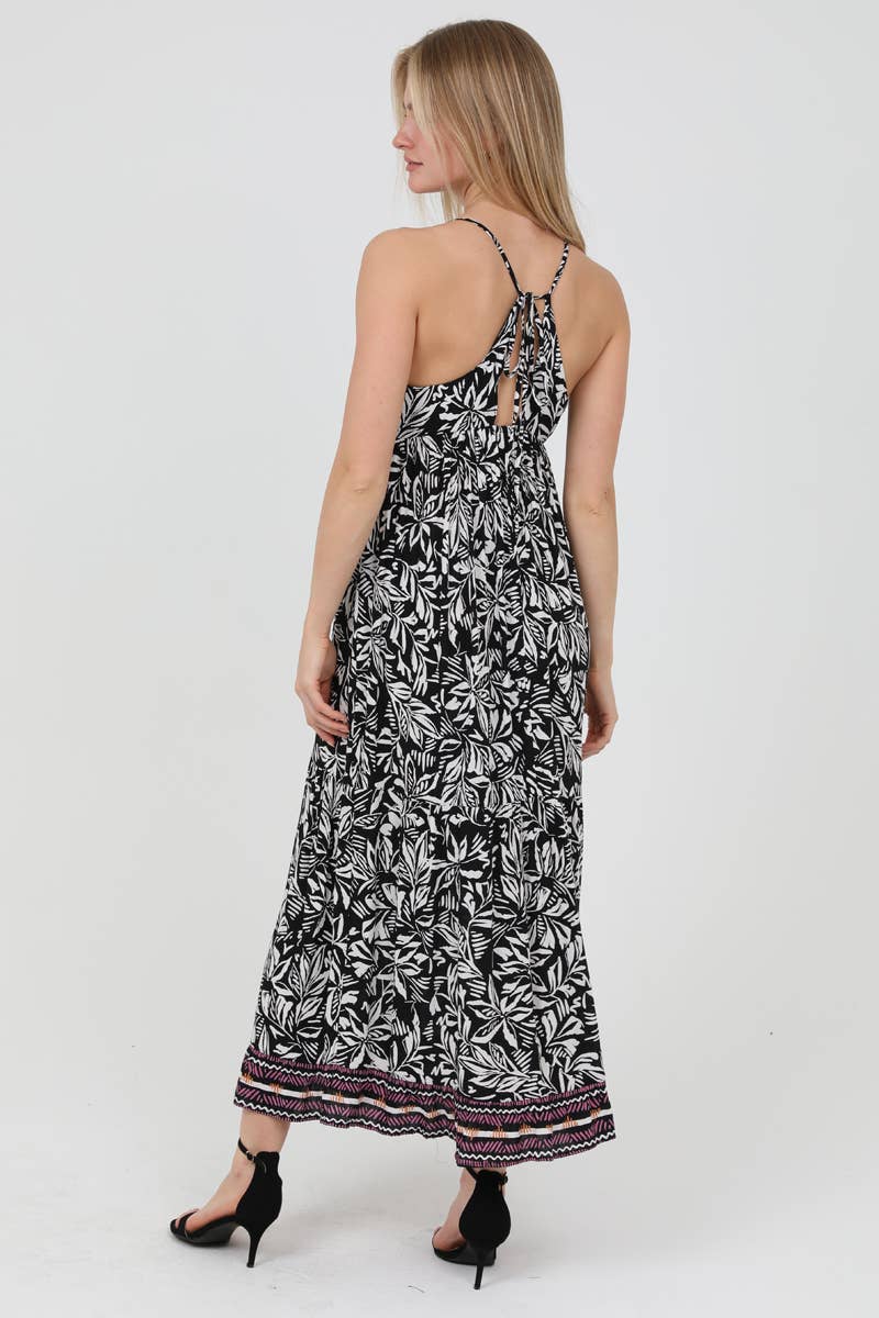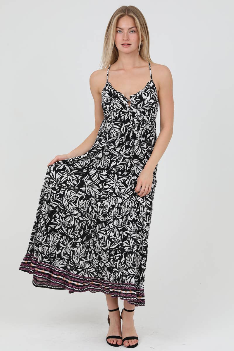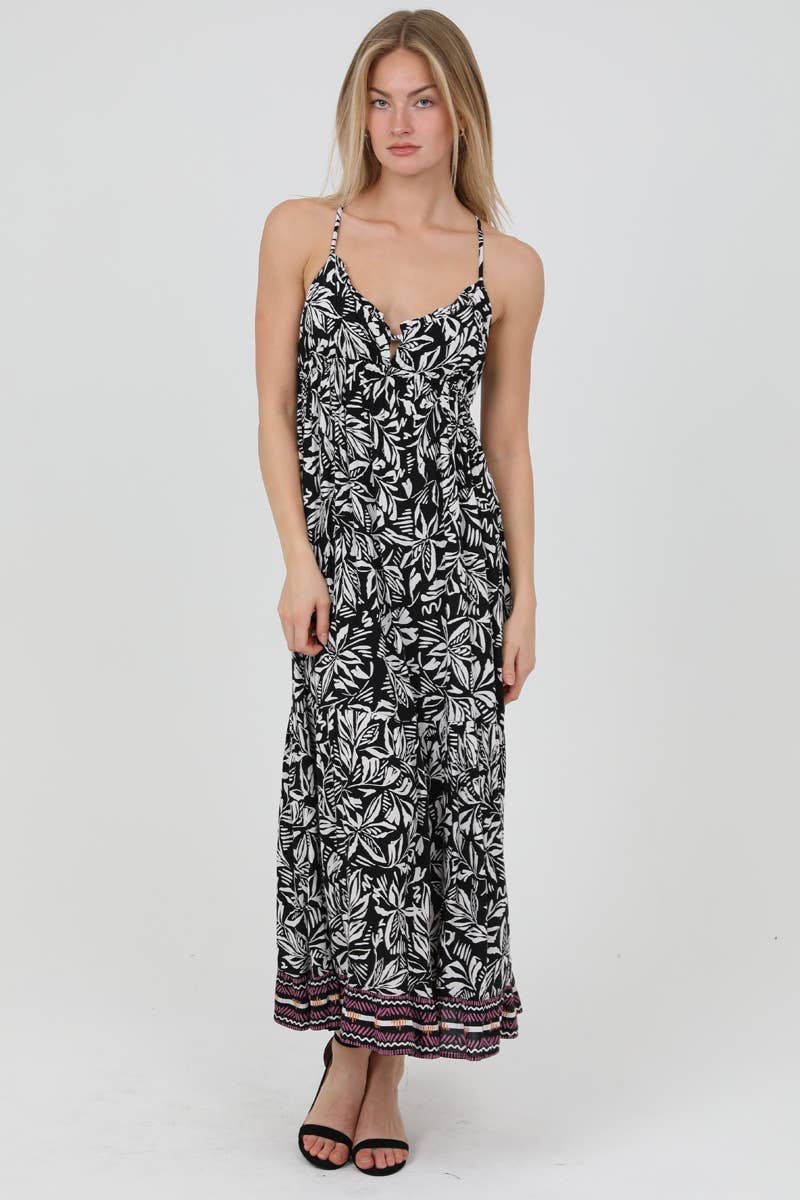 Immerse yourself in the romantic and whimsical aesthetic of the Spaghetti Strap Racer Back Maxi Dress from Angie. Ideal for a resort vacation, this sundress features an abstract & geometric pattern that exudes a boho vibe. The dress is designed with a sweetheart neckline and is sleeveless, perfect for a breezy summer day. The maxi length adds an element of elegance, making it suitable for both casual and more formal occasions. Made with the modern, adventurous woman in mind, this dress embodies Angie's bold, poetic, and wearable design philosophy.