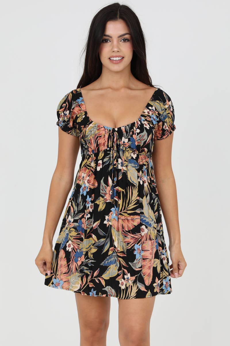 C4A28-A878 PRINTED SHORT SLEEVE SHORT DRESS