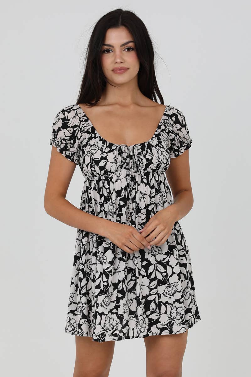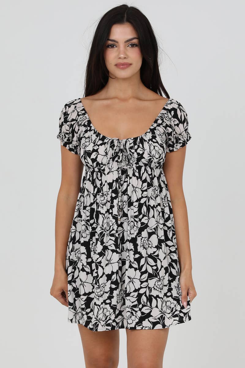 C4A28-FQ80 PUFF SLEEVE PRINTED DRESS