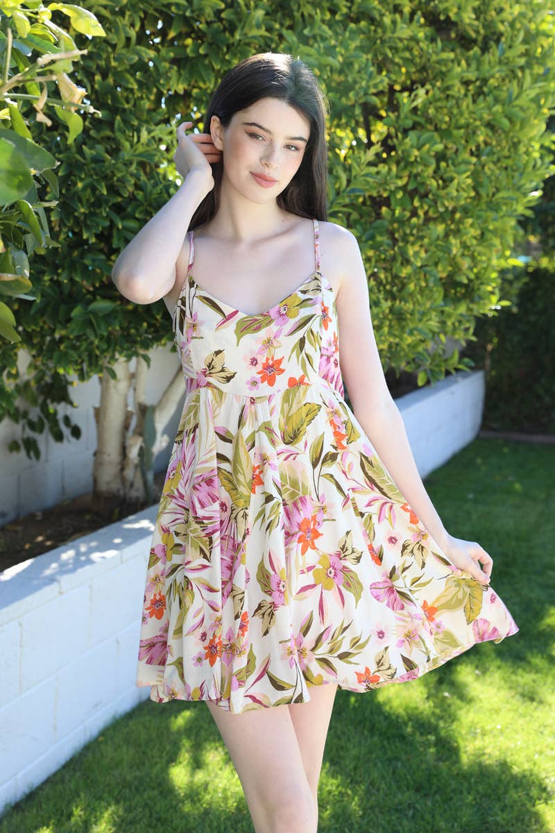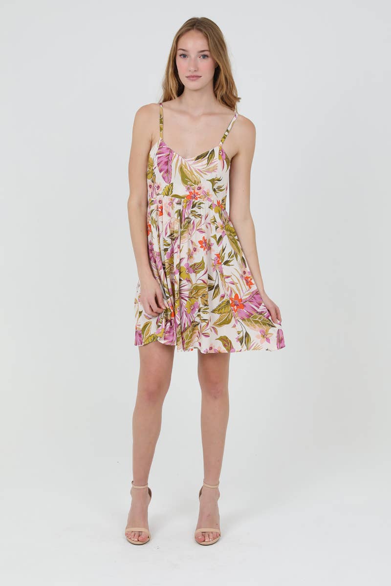 TROPICAL PRINT OPEN BACK V NECK SUNDRESS