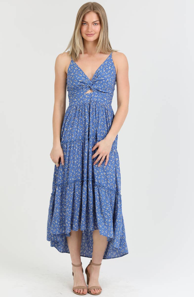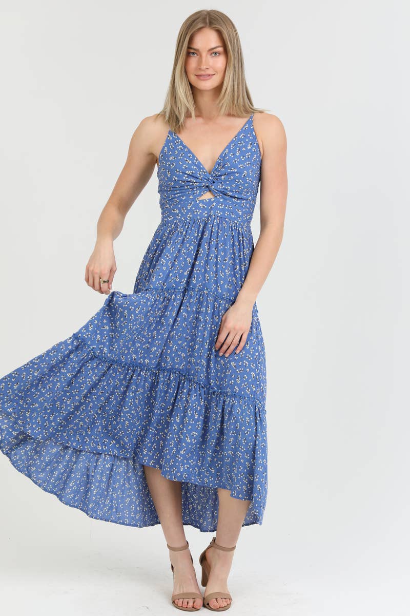 V NECK TWIST FRONT CUT OUT MAXI DRESS