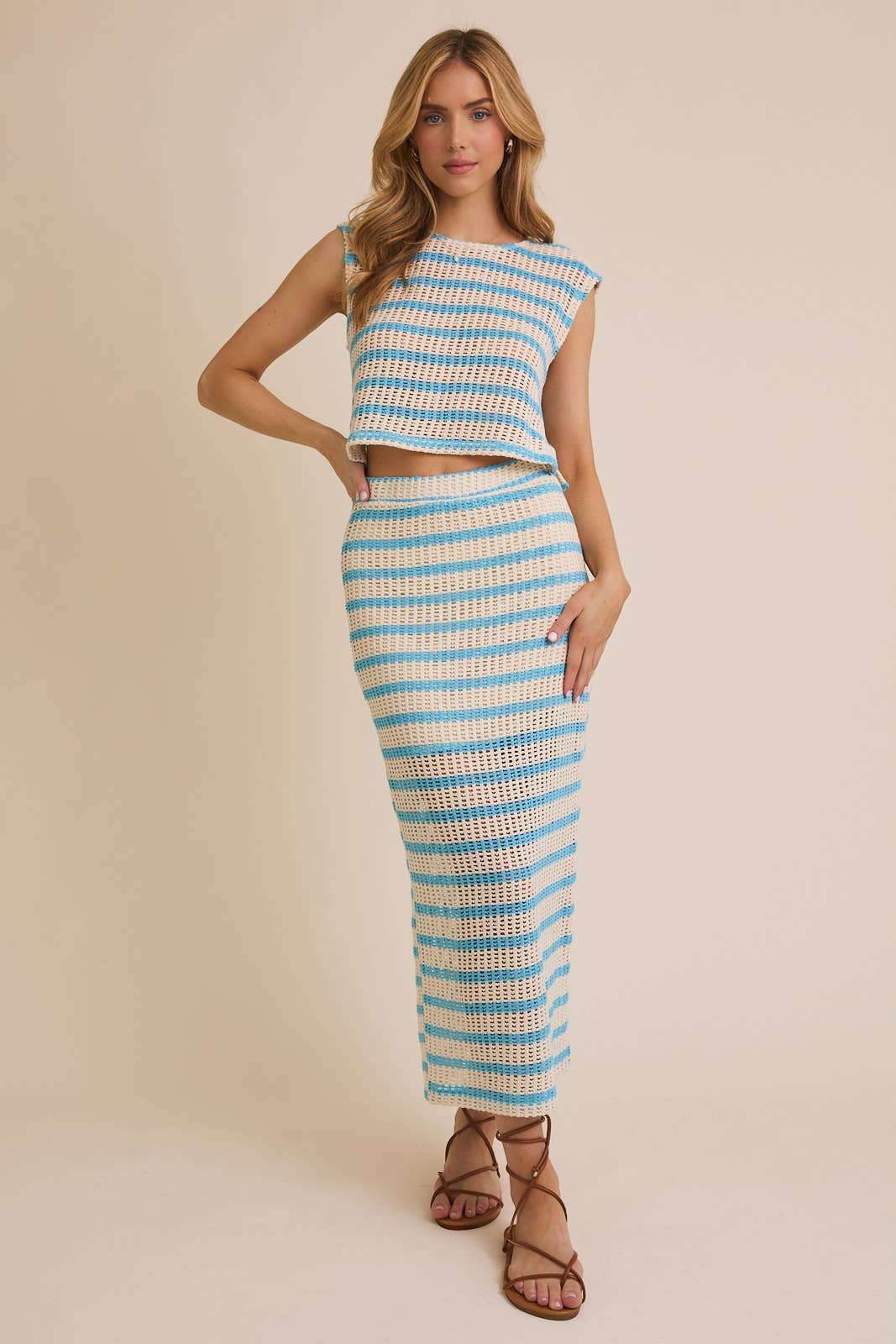 Skirt Onlyyyy: IVORY-BLUE STRIPE / ATS7086