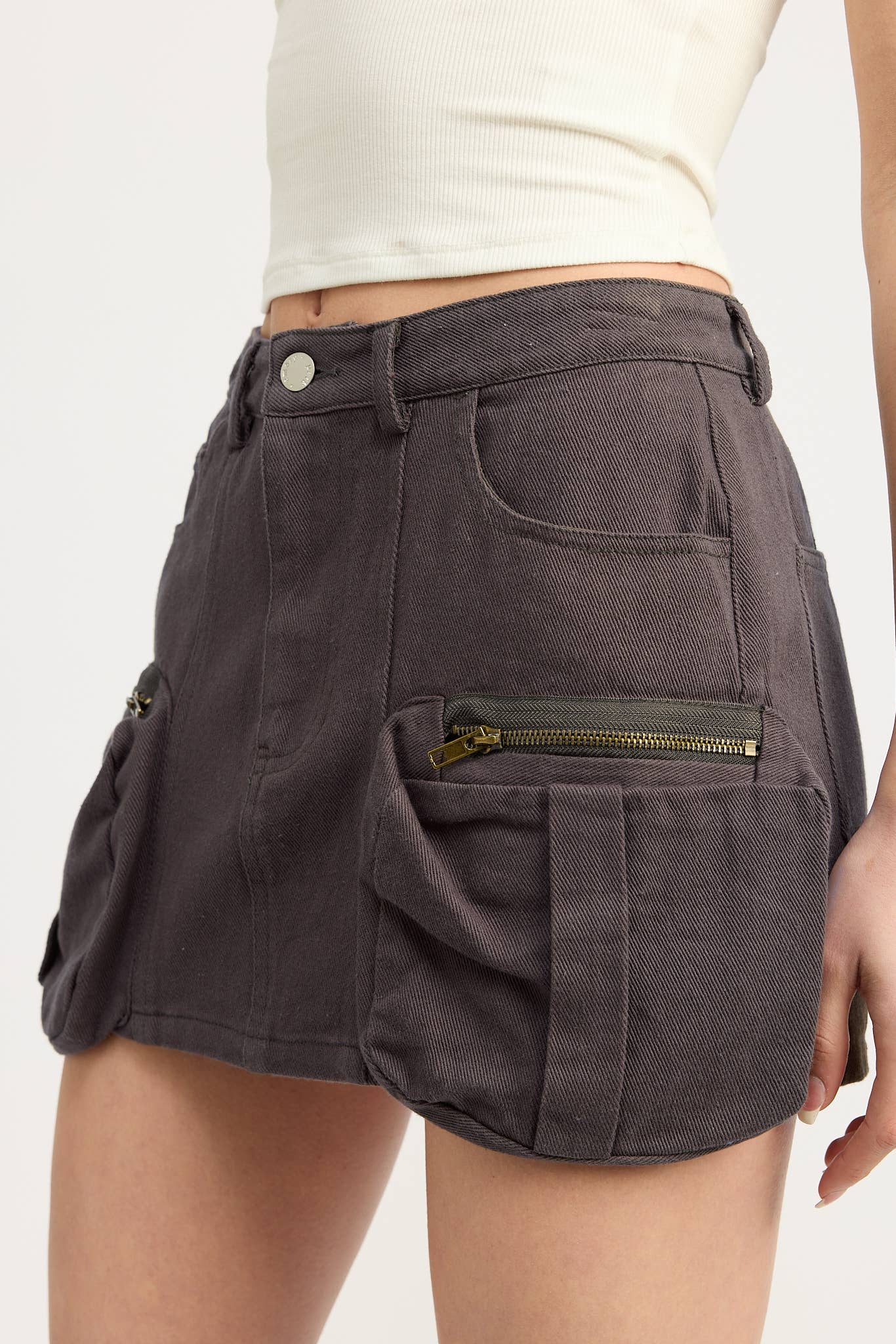 Imk9791-s CARGO MINI SKIRT: CHARCOAL