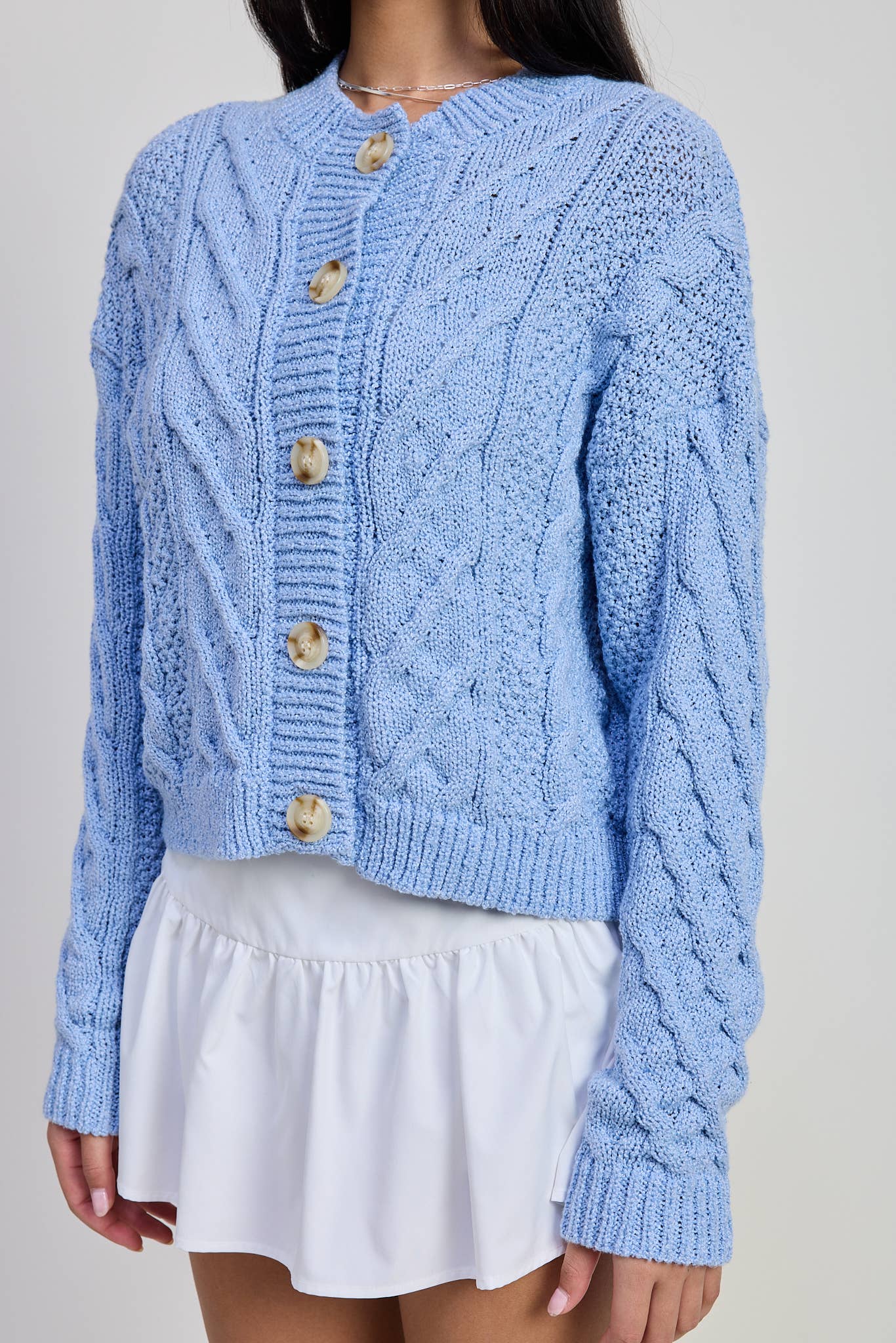 CHUNKY CABLE KNIT CARDIGAN: SKY BLUE / IPK2064C