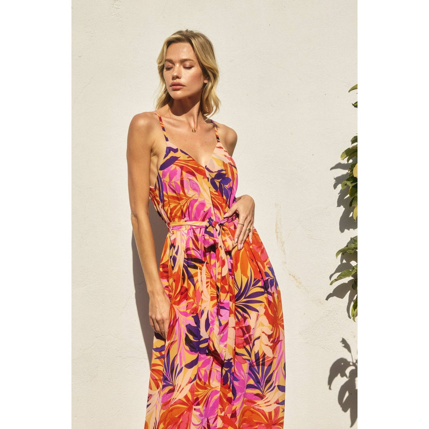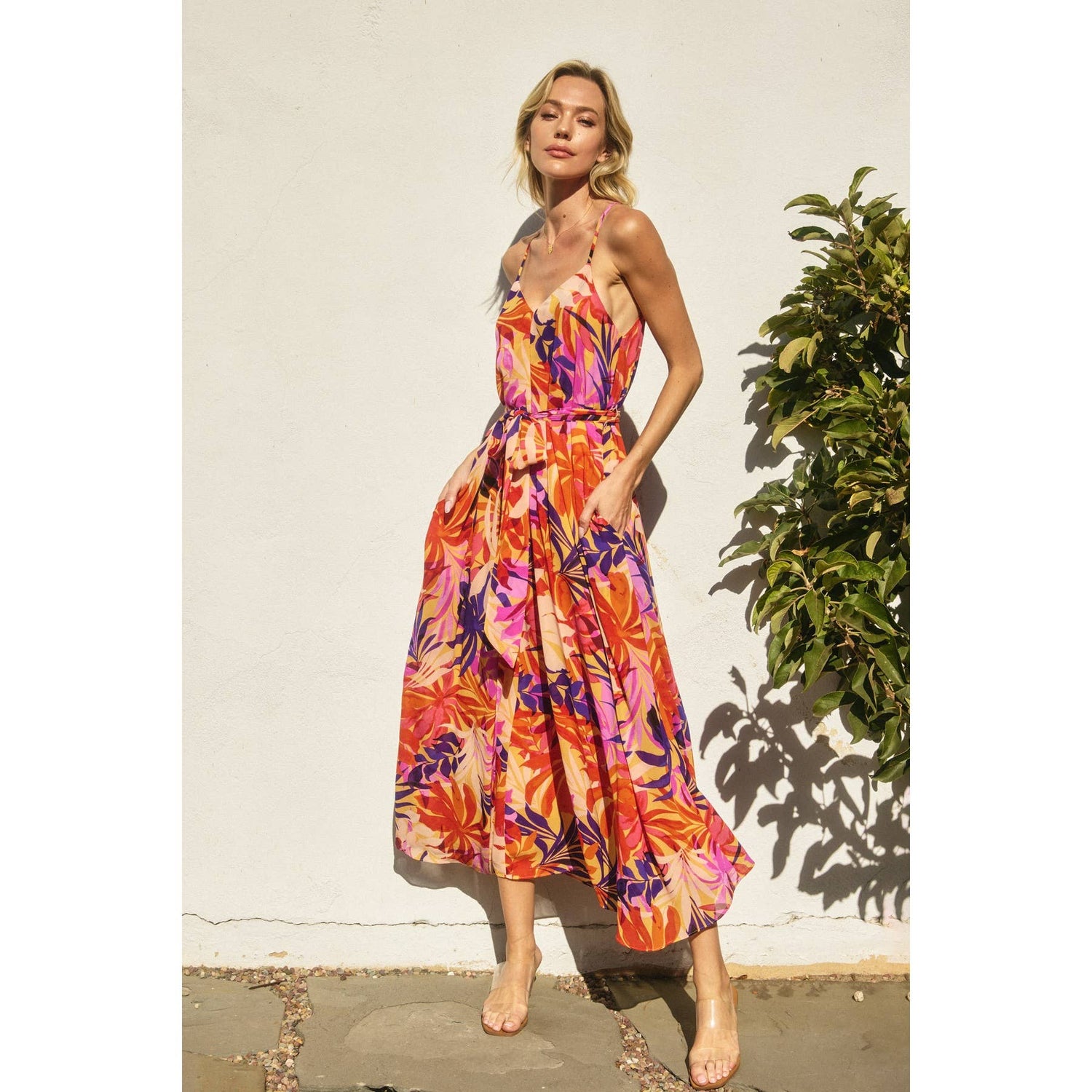 Coastal Cruising Extra Flared Maxi Dress: SUNSET FRONDS / FD11448-P1998_1