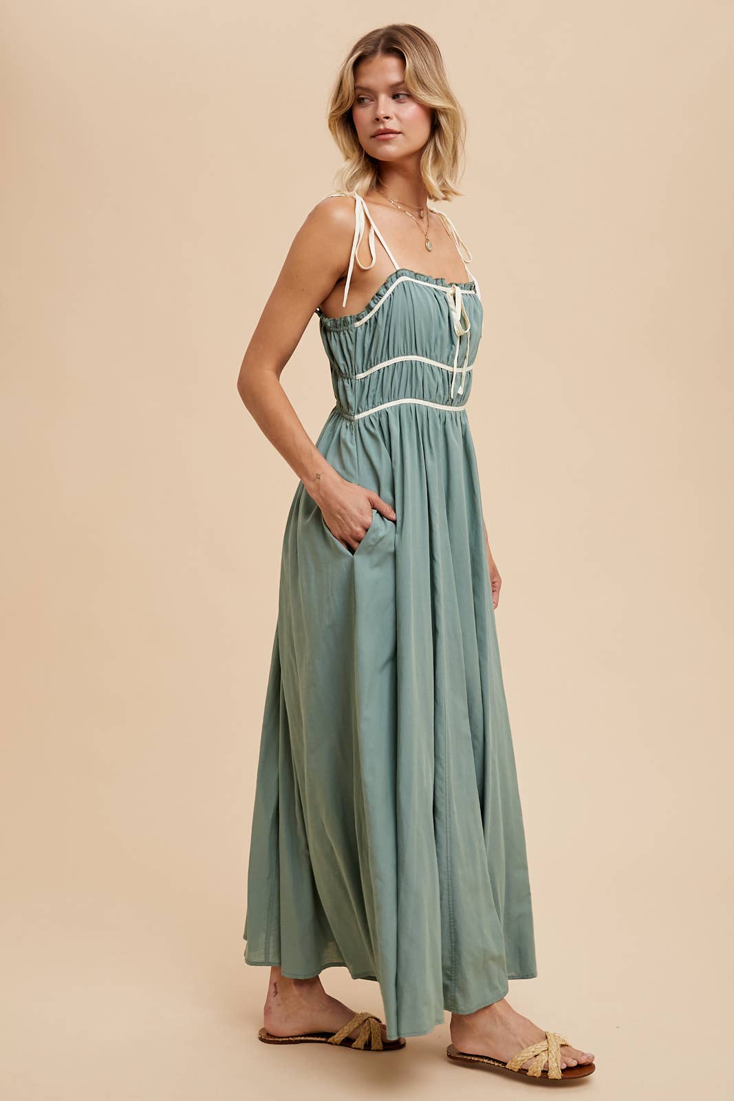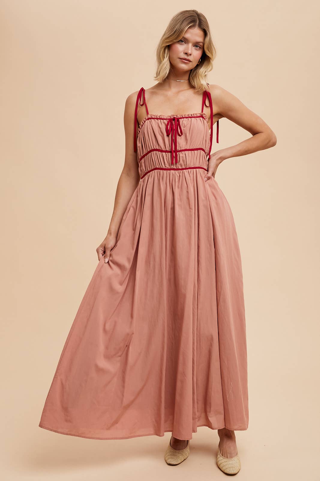 CONTRAST TRIM MAXI DRESS FEATURES: