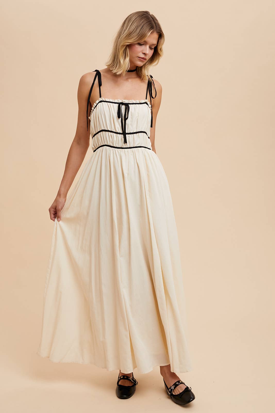COTTON BLEND CONTRAST TRIM MAXI DRESS: BUTTERCREAM / ILD5742
