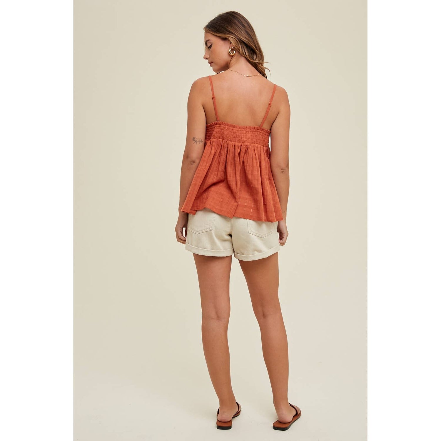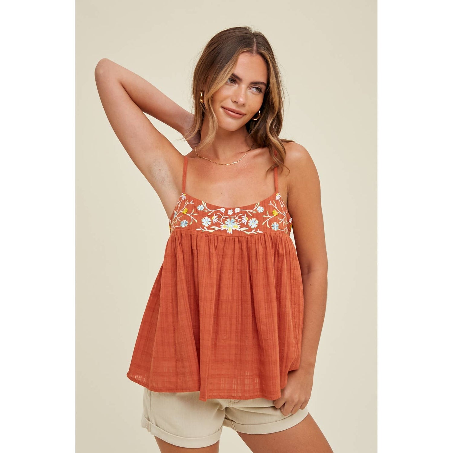 COTTON CAMI TOP WITH EMBROIDERY DETAIL
