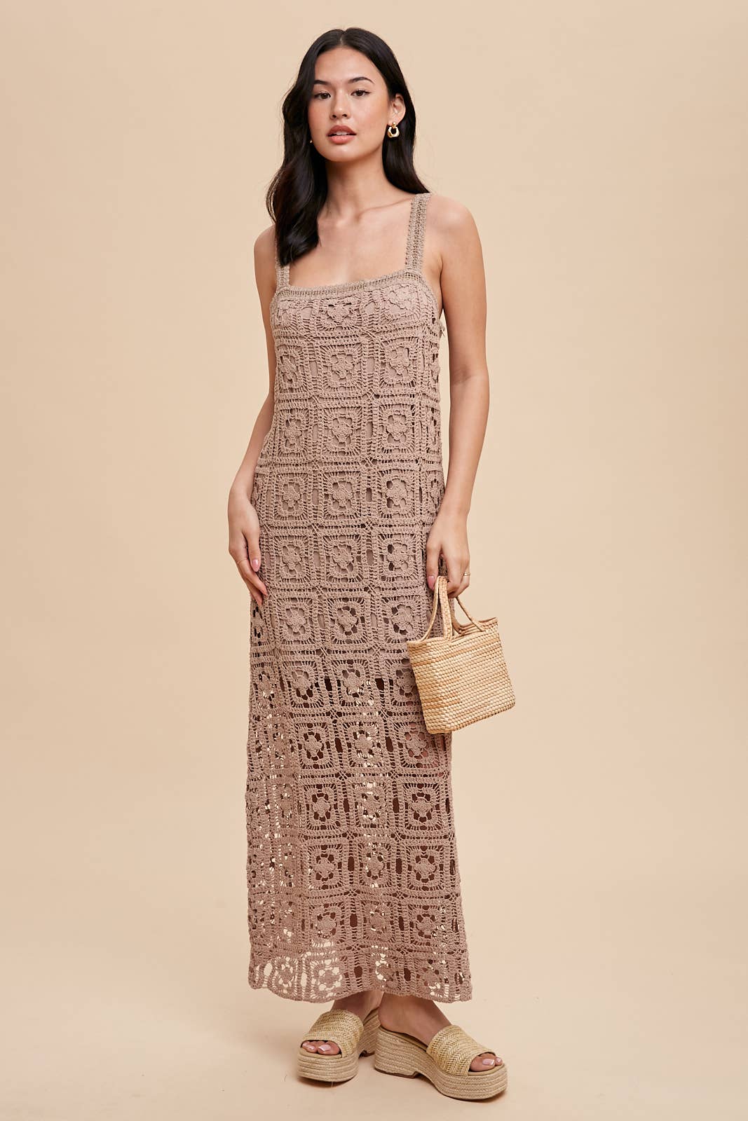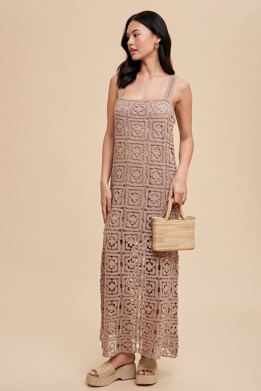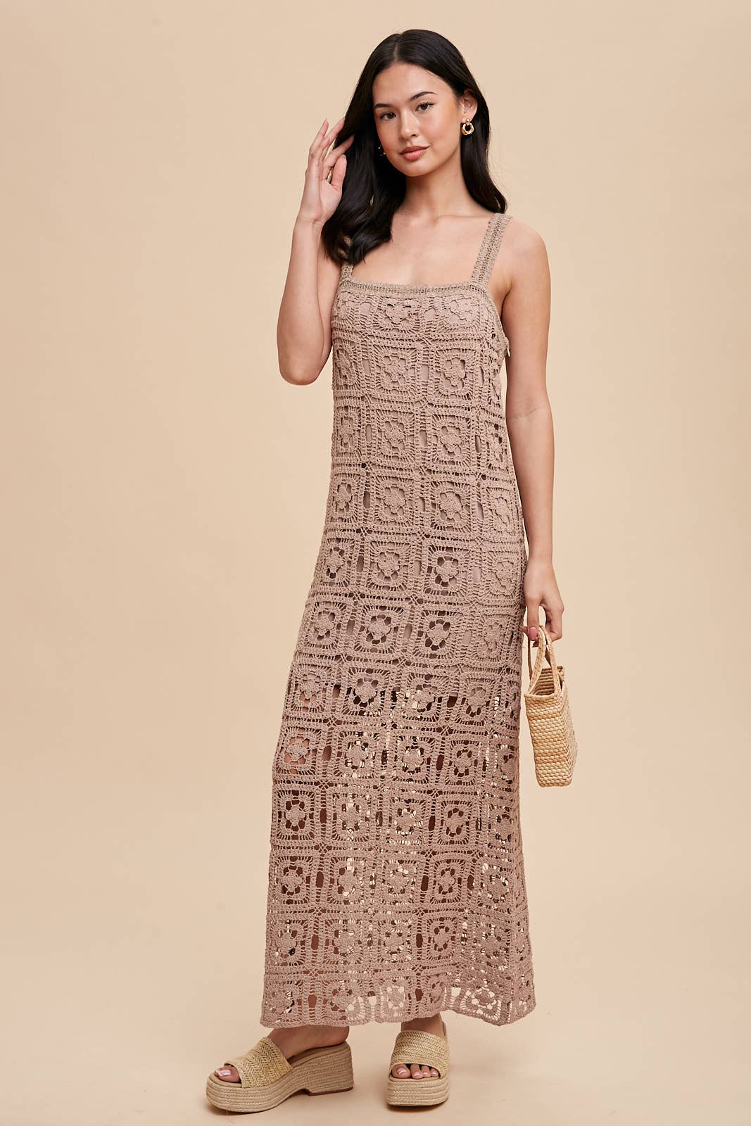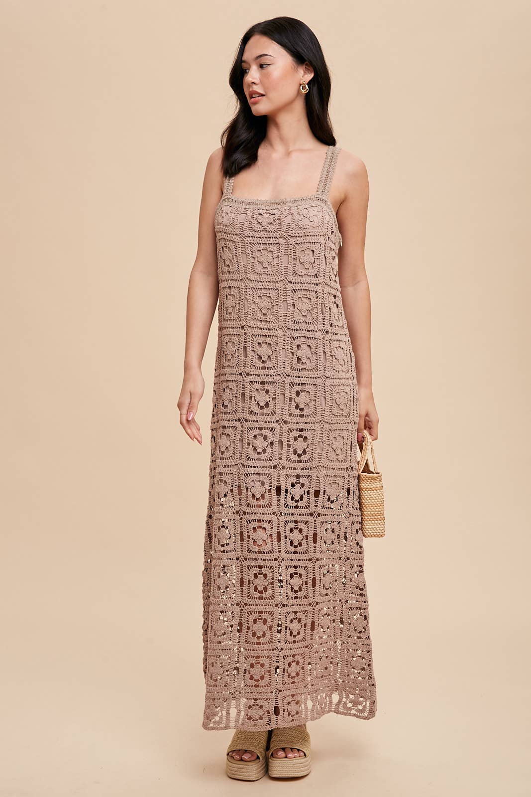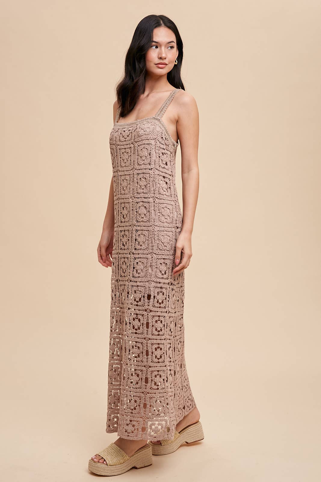 THE PERFECT RESORT WEAR DRESS IS HERE! SQUARE NECK MAXI DRESS FEATURES: COTTON CROCHET FABRICATION, TANK STRAPS, CONCEALED SIDE ZIPPER AND LINING.