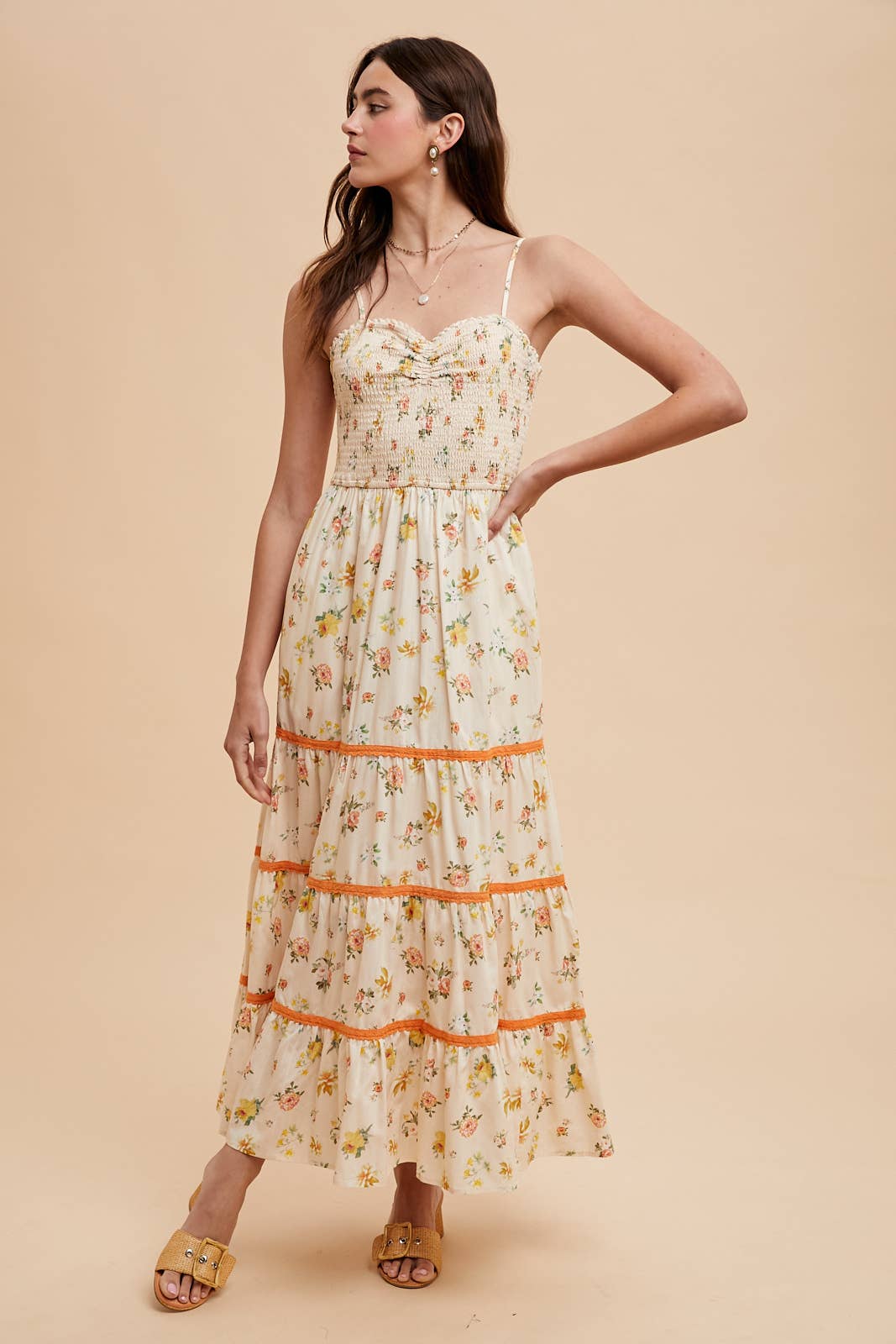 COTTON FLORAL SMOCKED MAXI DRESS: BUTTERCREAM FLORAL / ILD6377