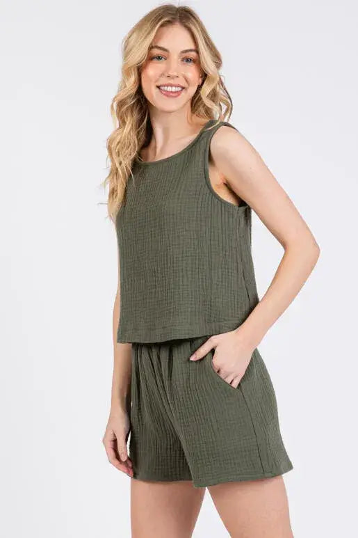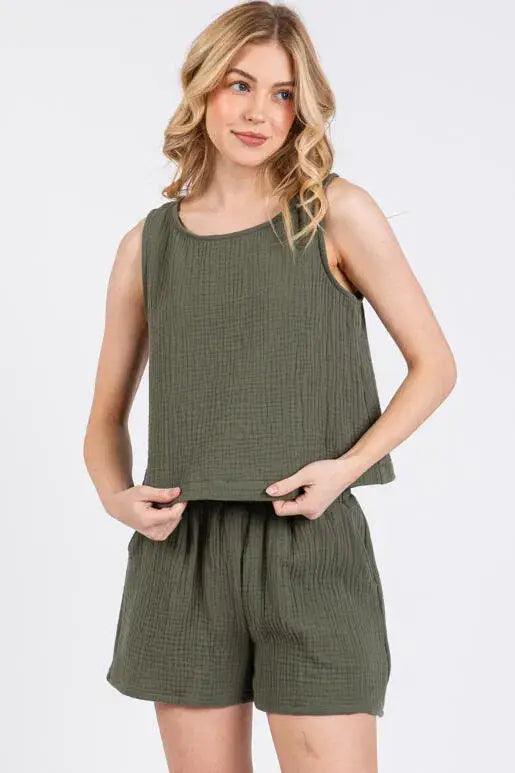 Cotton triple gauze round neck sleeveless top, matching bottom: NP70284H