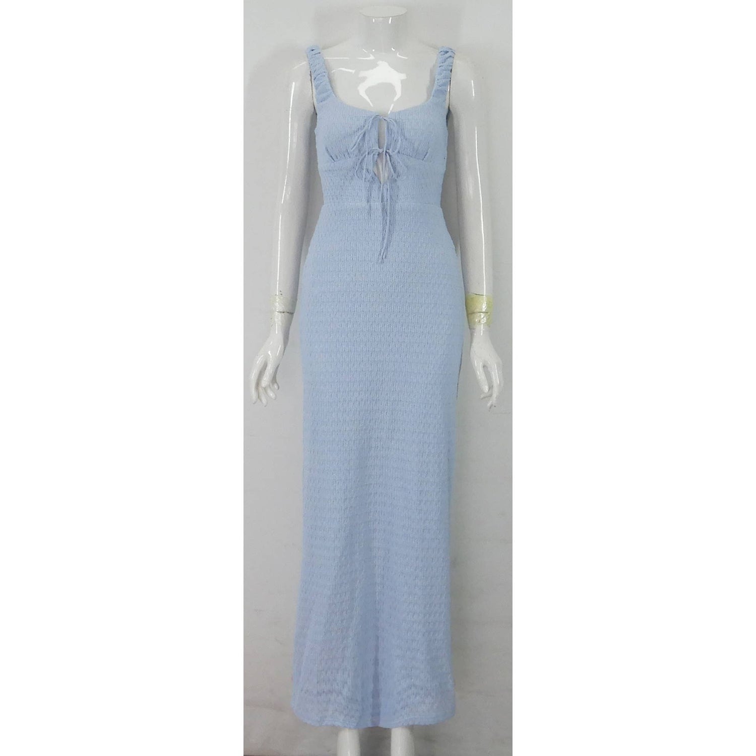 CRINKLE FABRIC BODYCON MAXI DRESS: BABY BLUE / SR1439J