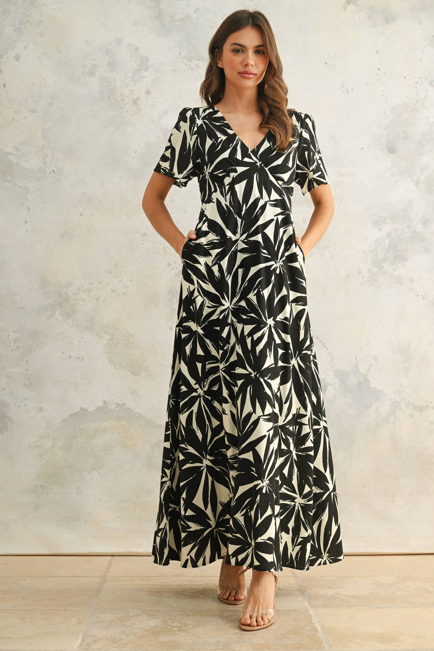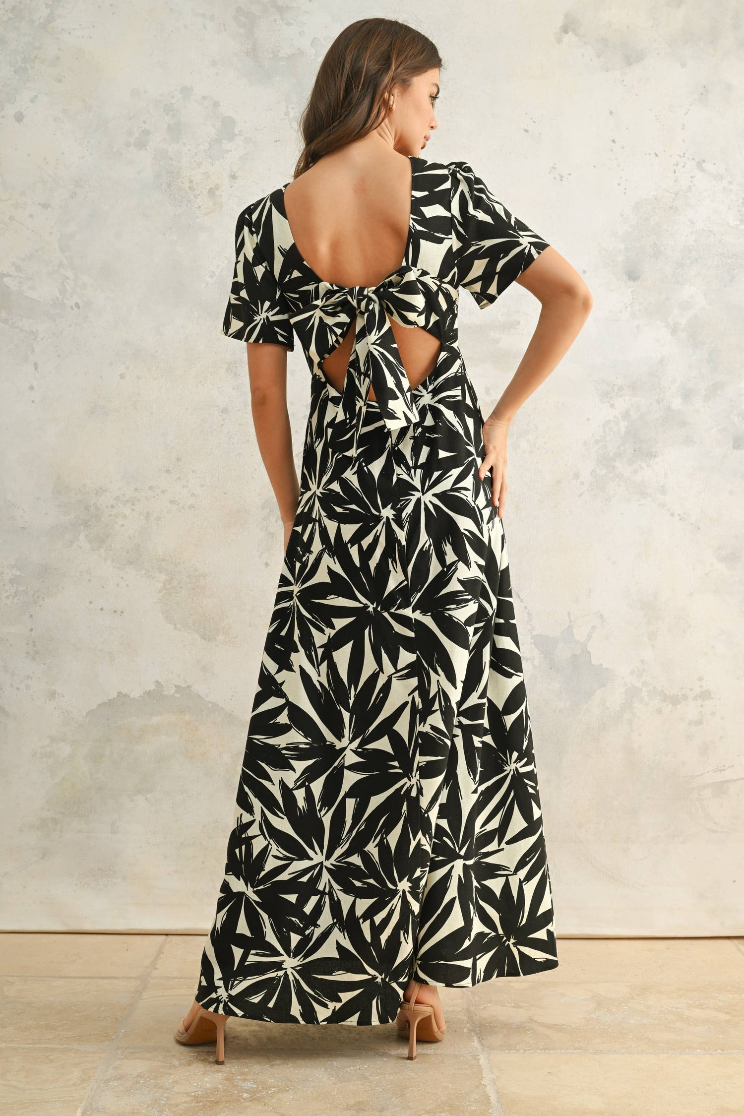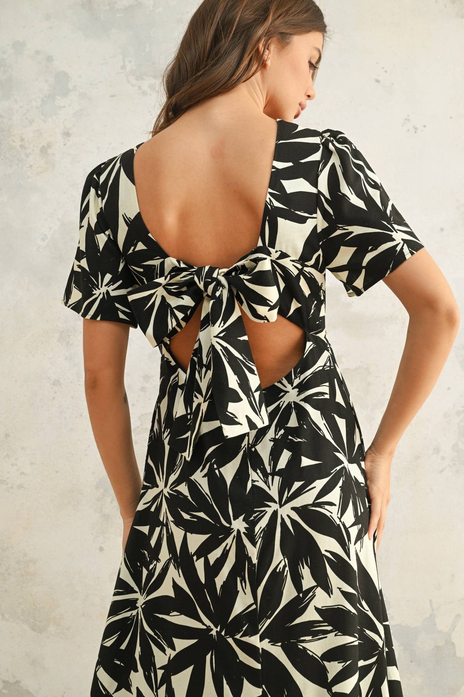 D4902 TROPICAL LEAF PRINTED DRESS: Black