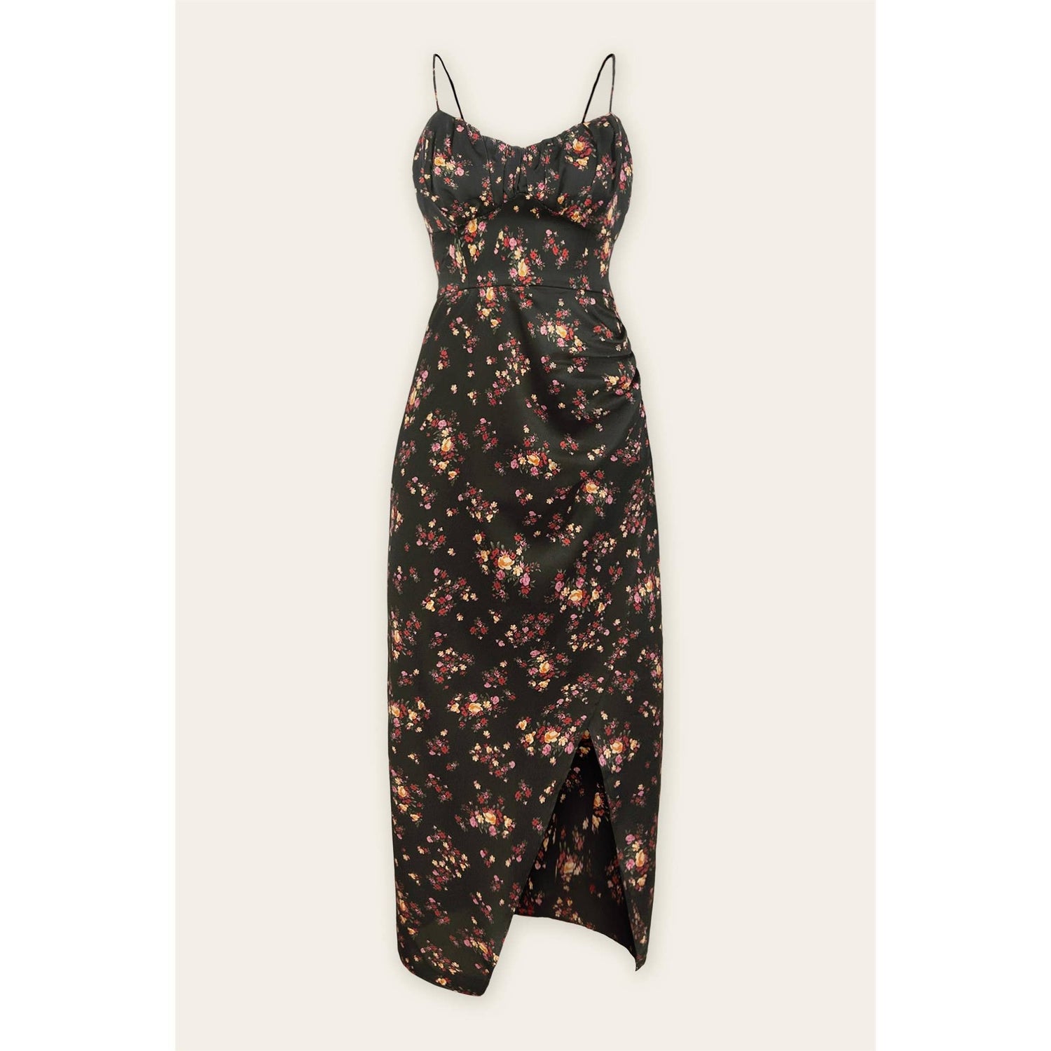 Ditsy floral print satin midi dress - Sweetheart neckline - Adjustable shoulder straps - Tie back with a cutout detail - Partially lined Shell: 100% Polyester Lining: 100% Polyester Available By BLACK : 11/17/2023