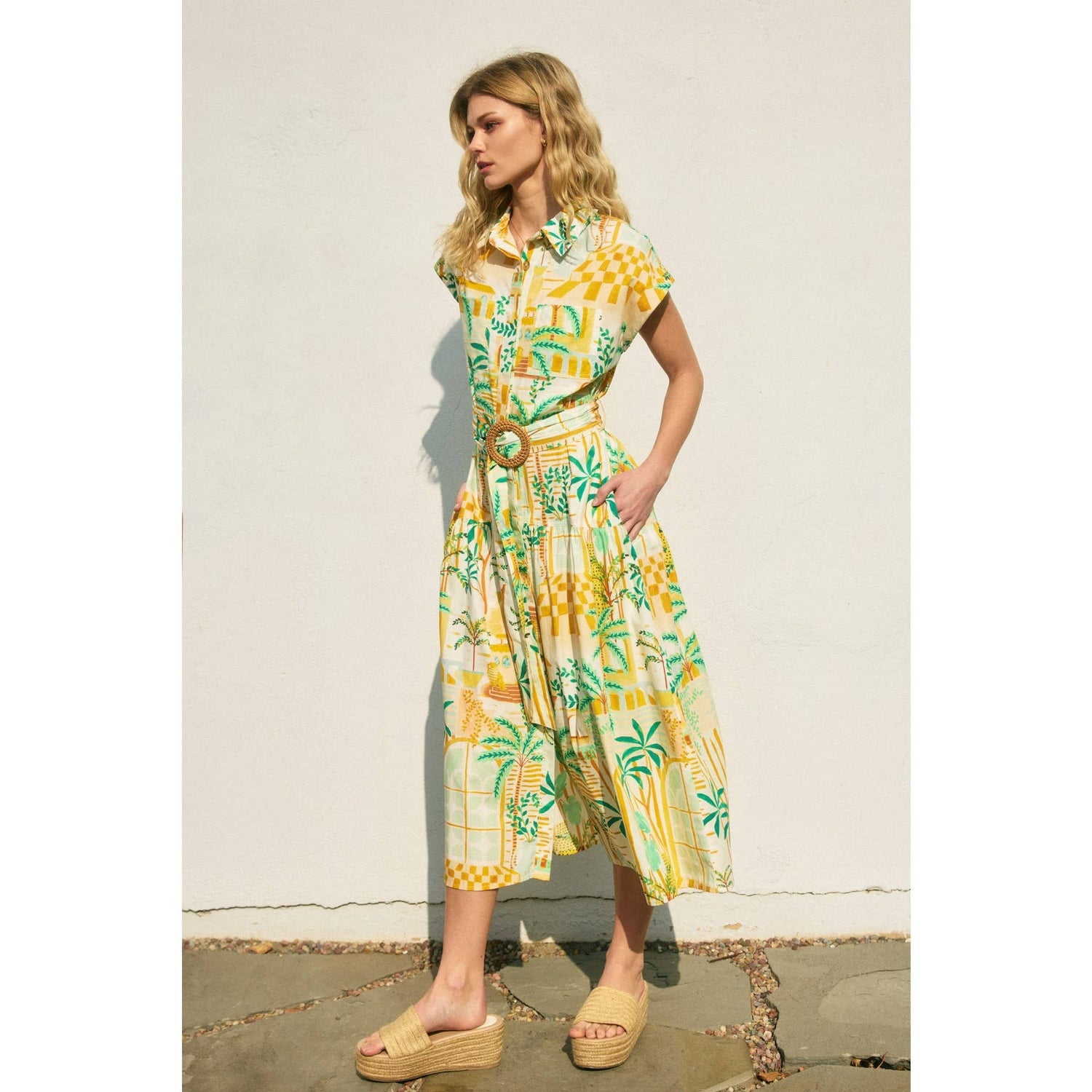 Dance In The Sand Sash Belt Shirt Dress: GREENHOUSE / FD11740-P1883