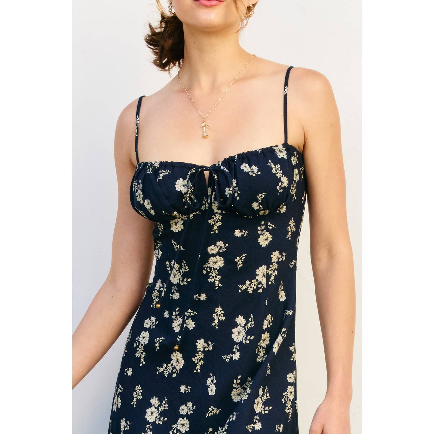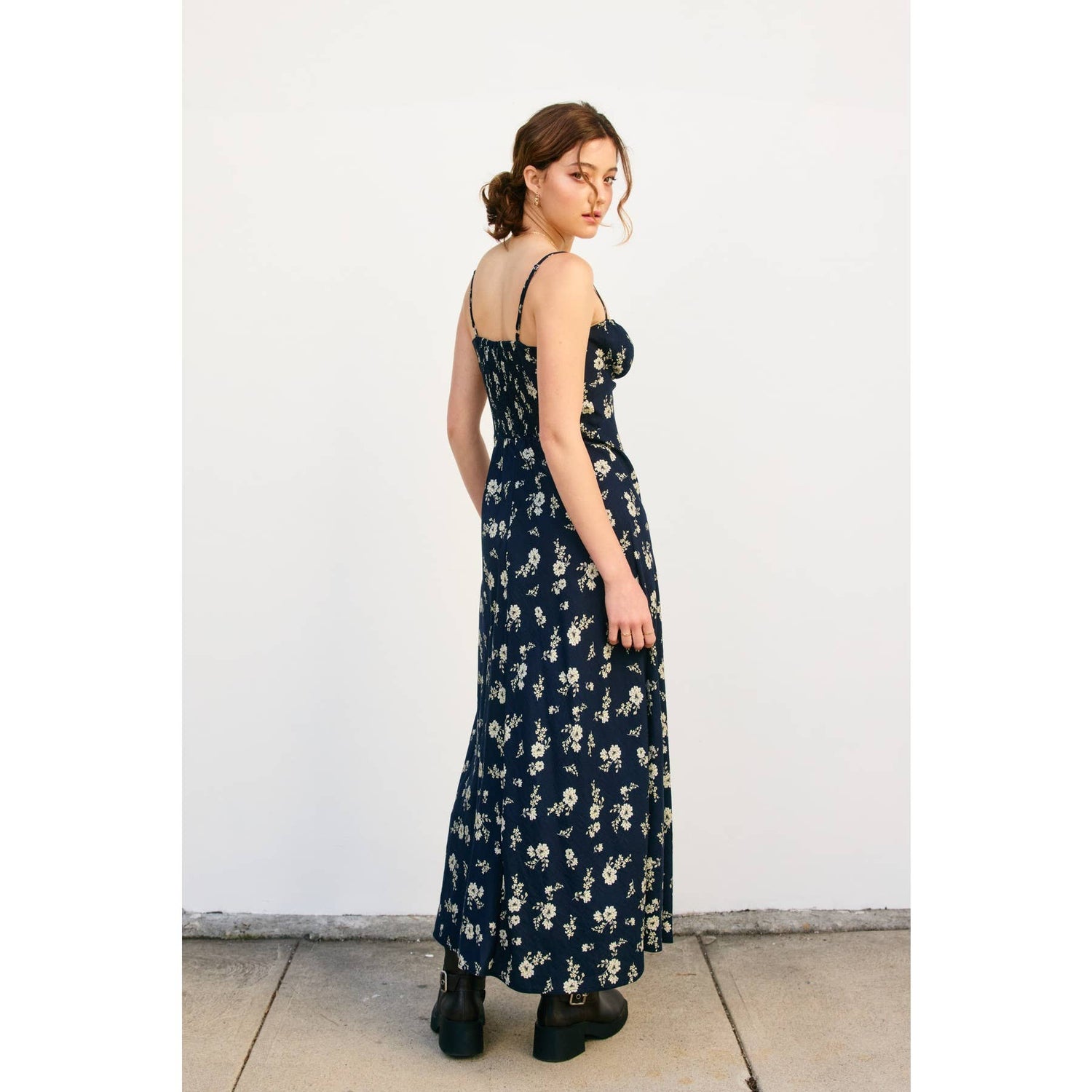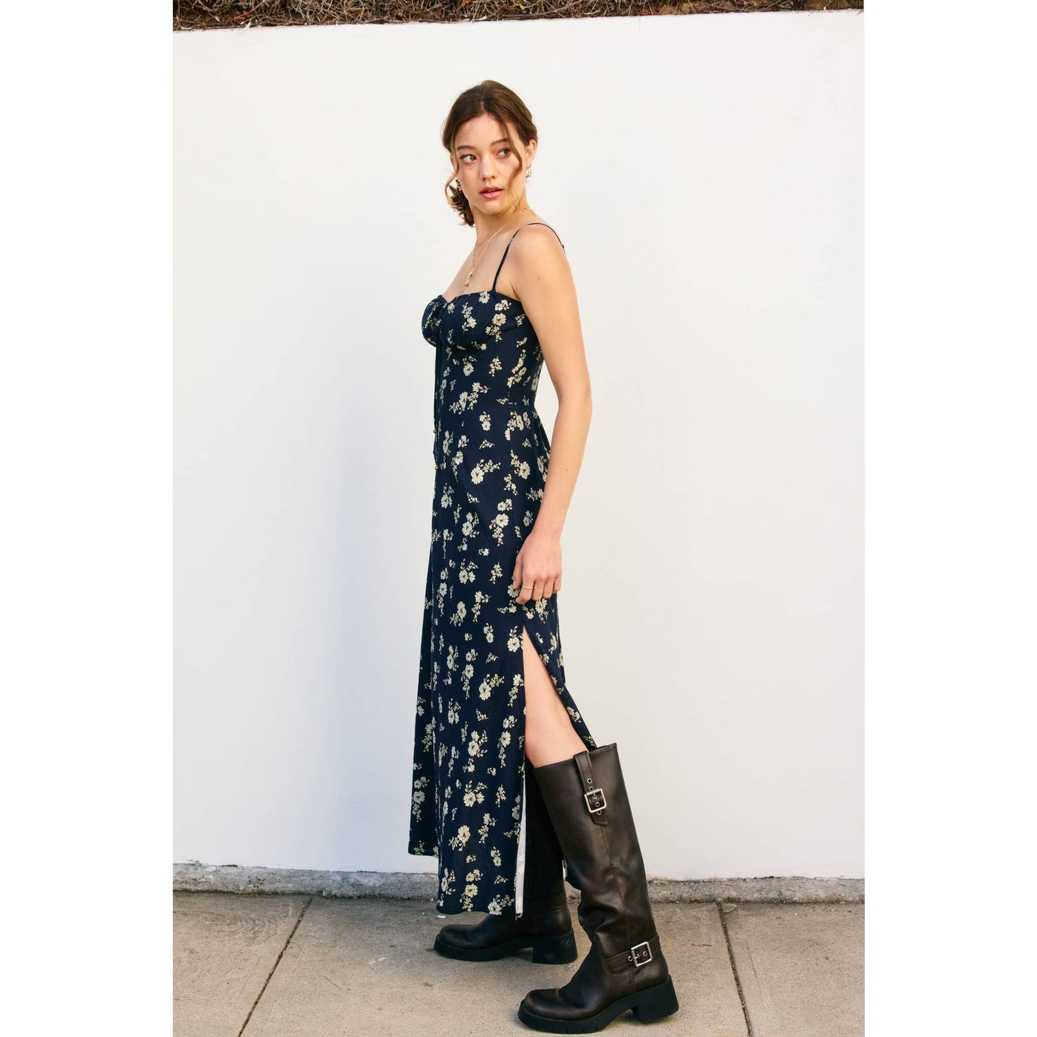 Dancing Moon Front Tie Slit Sleeveless Maxi Dress: MOONLIGHT FLORAL / FD13048-P2094