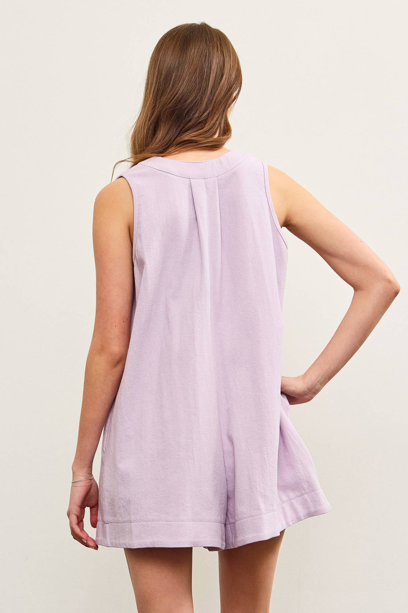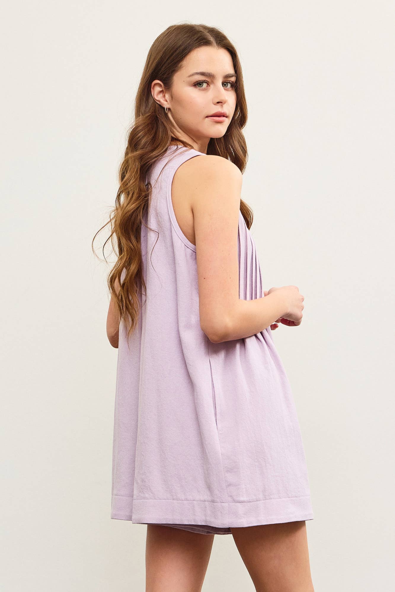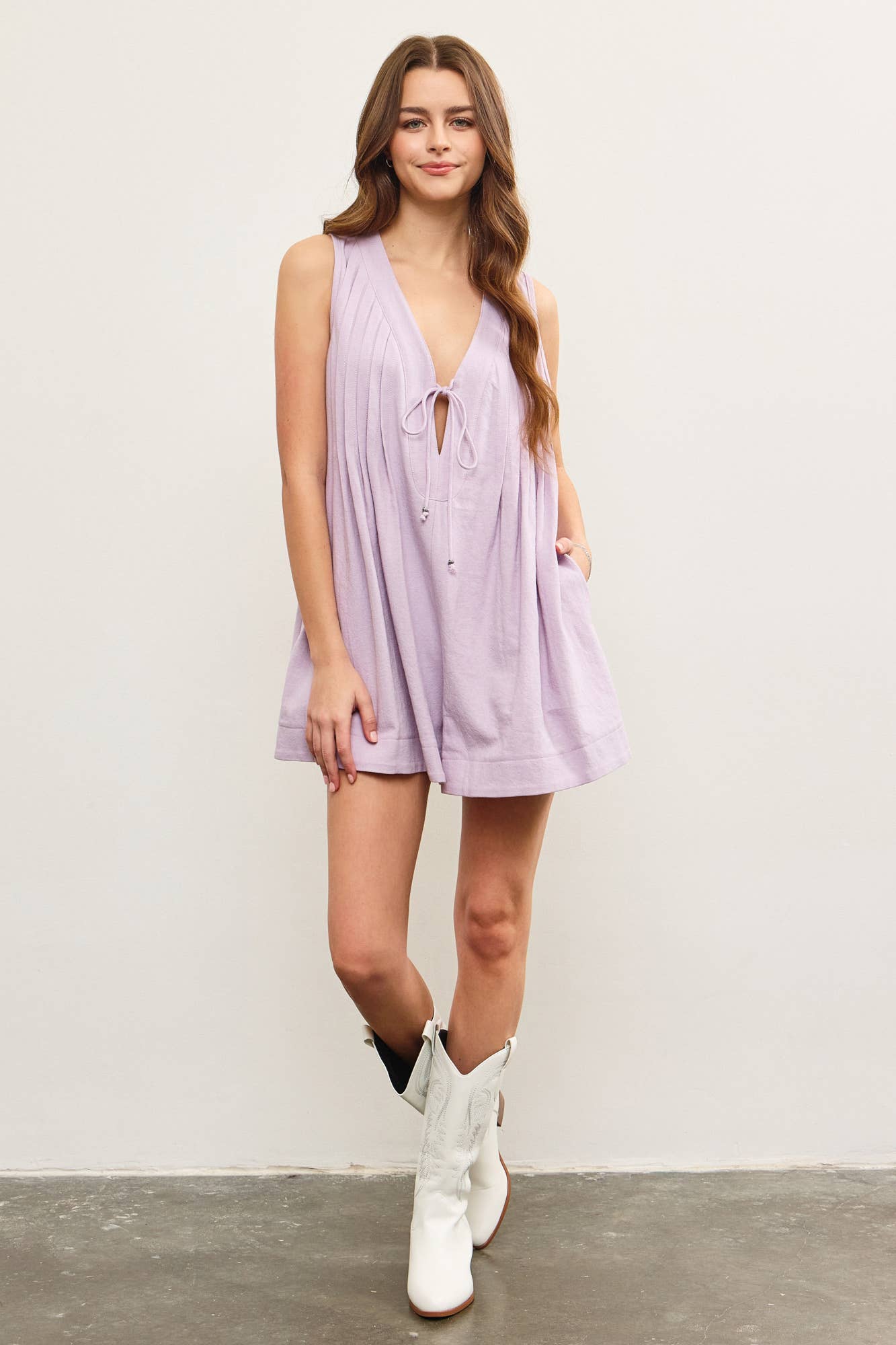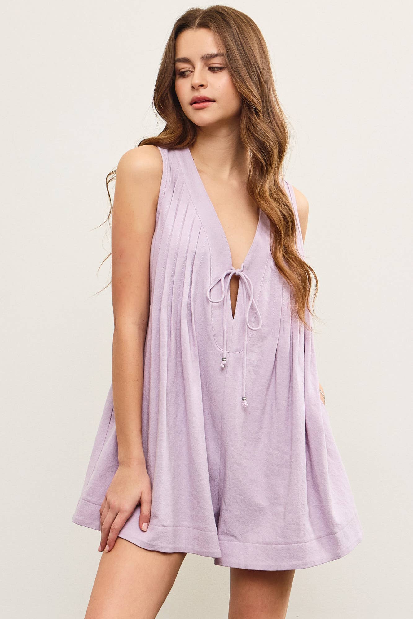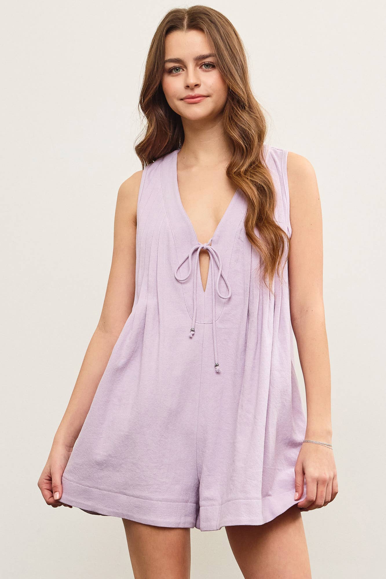 DEEP V NECK TIED FRONT PLEATED SLEEVELESS ROMPER