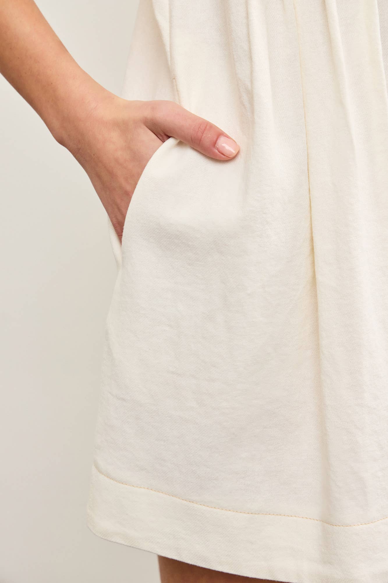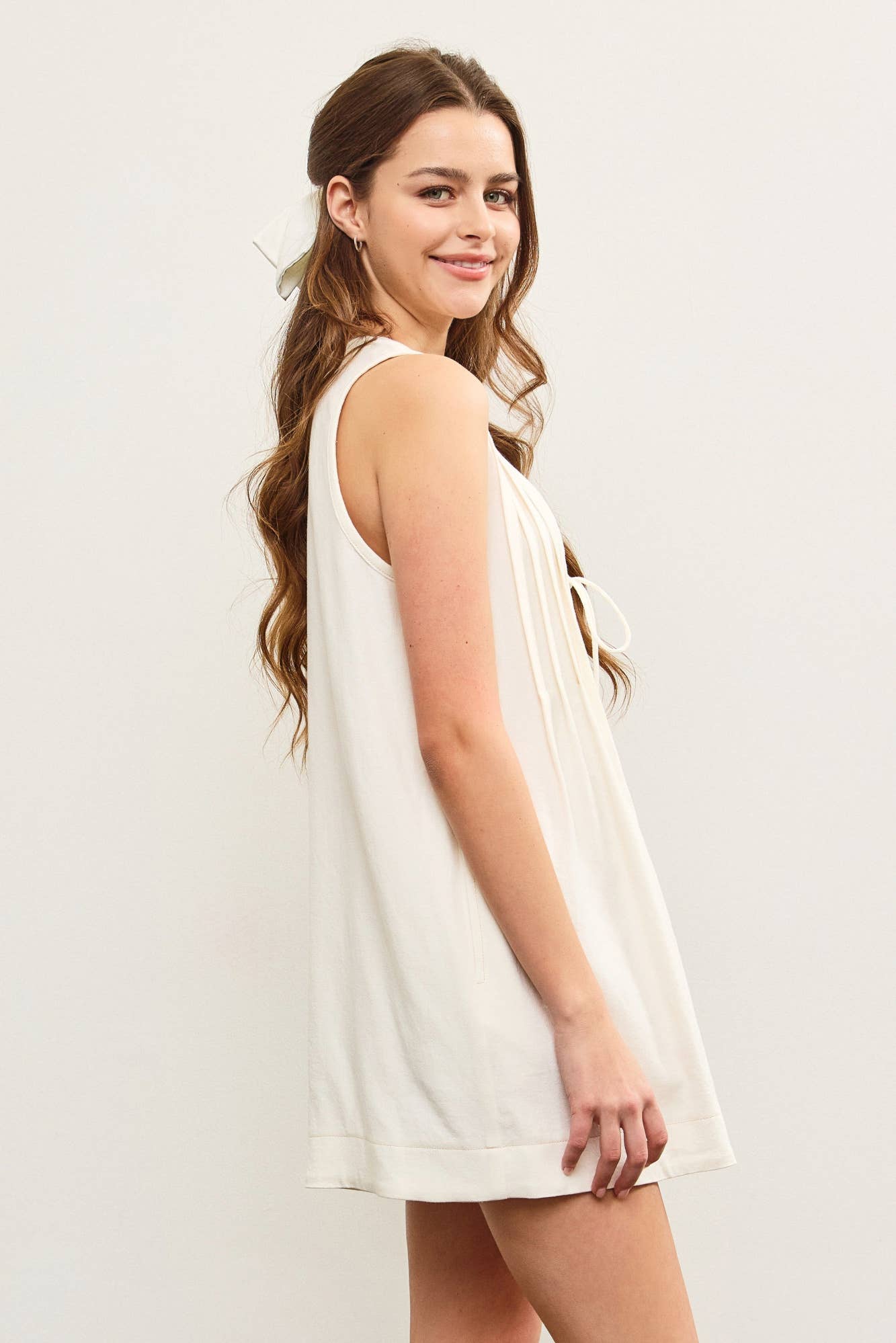 DEEP V NECK TIED FRONT PLEATED SLEEVELESS ROMPER: White / S24721