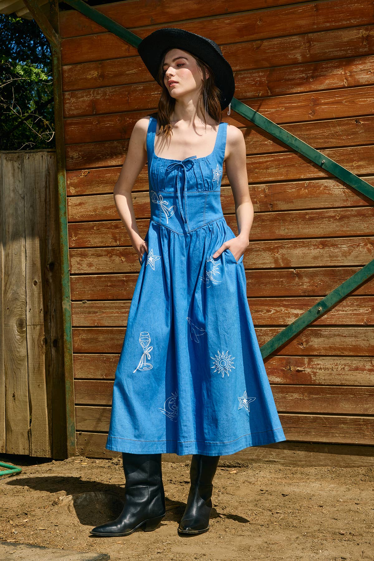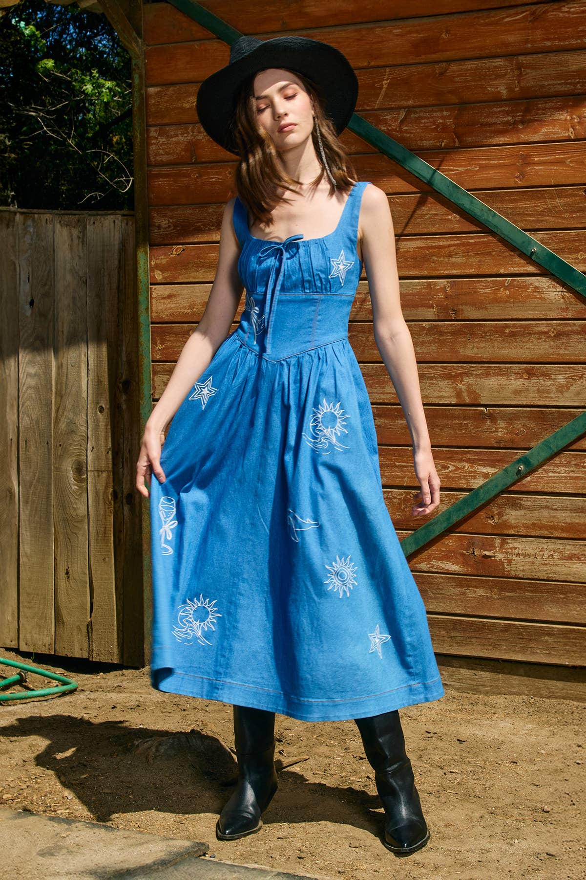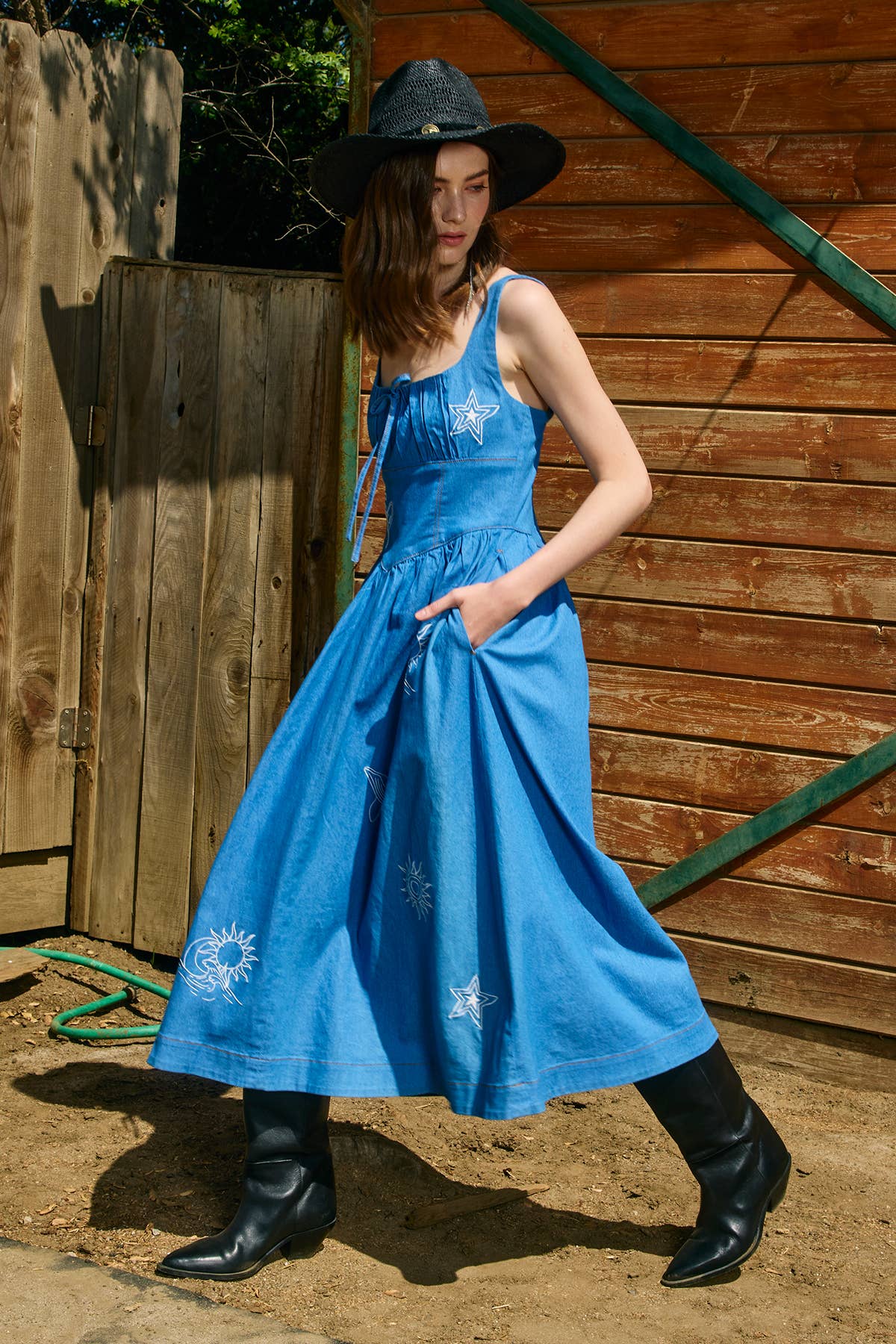Denim Sundress with Embroidery - RD1175 : DENIM