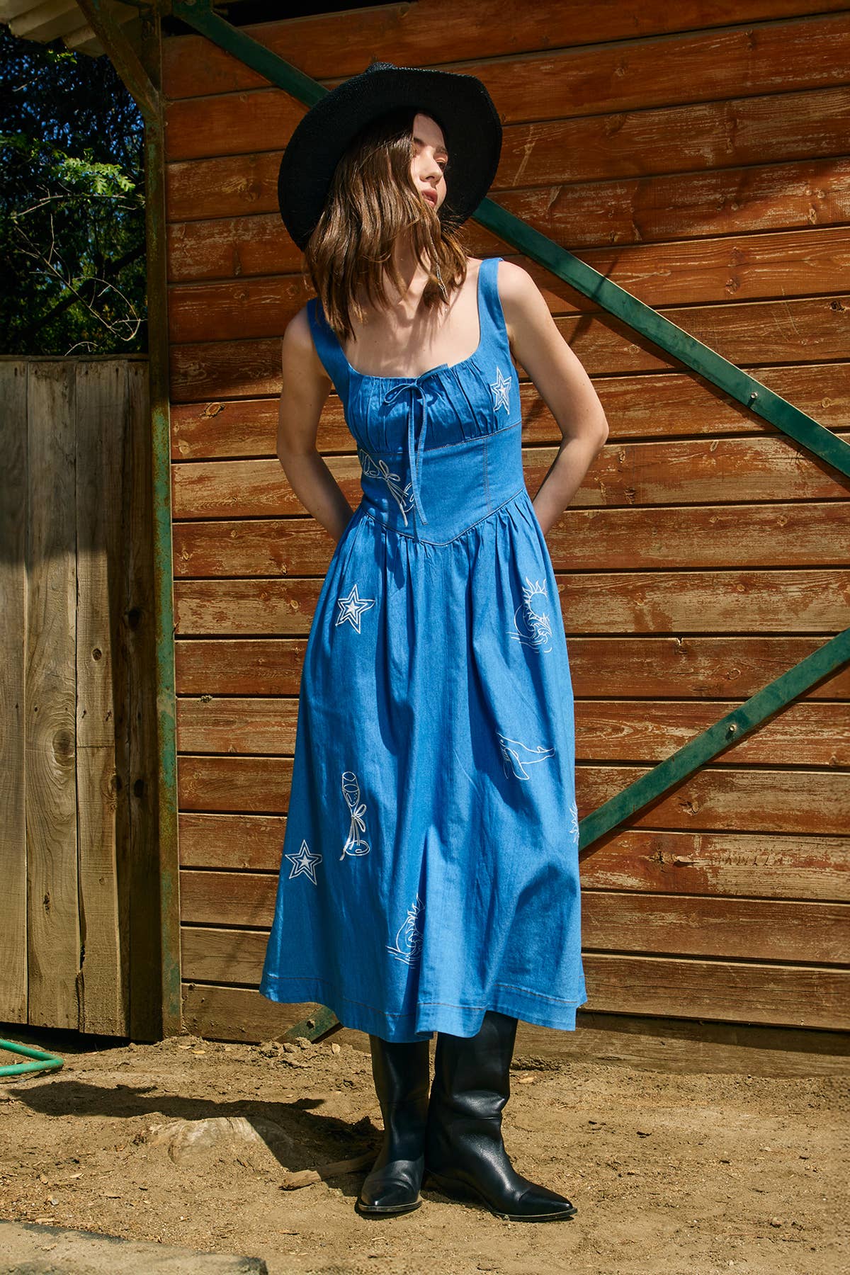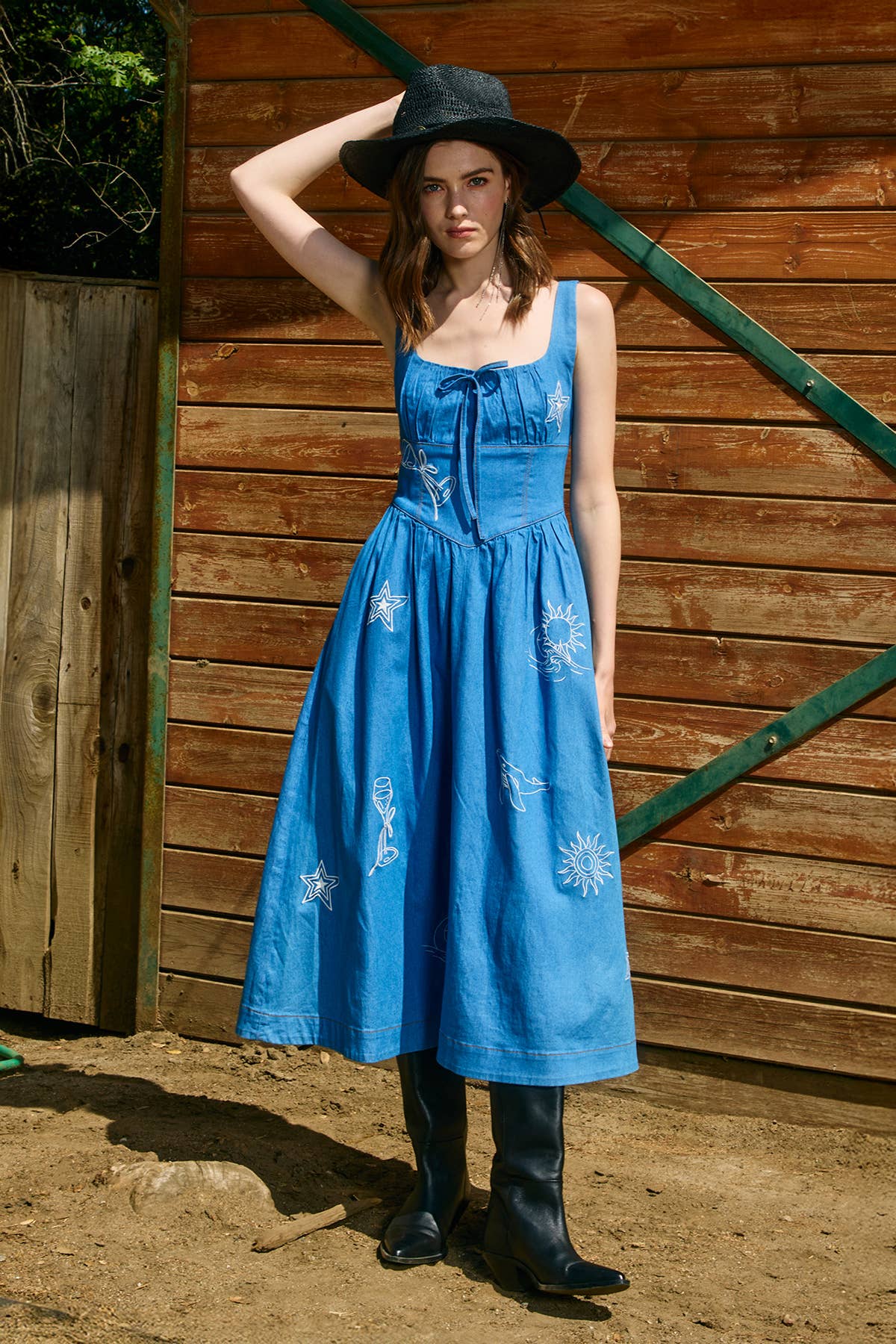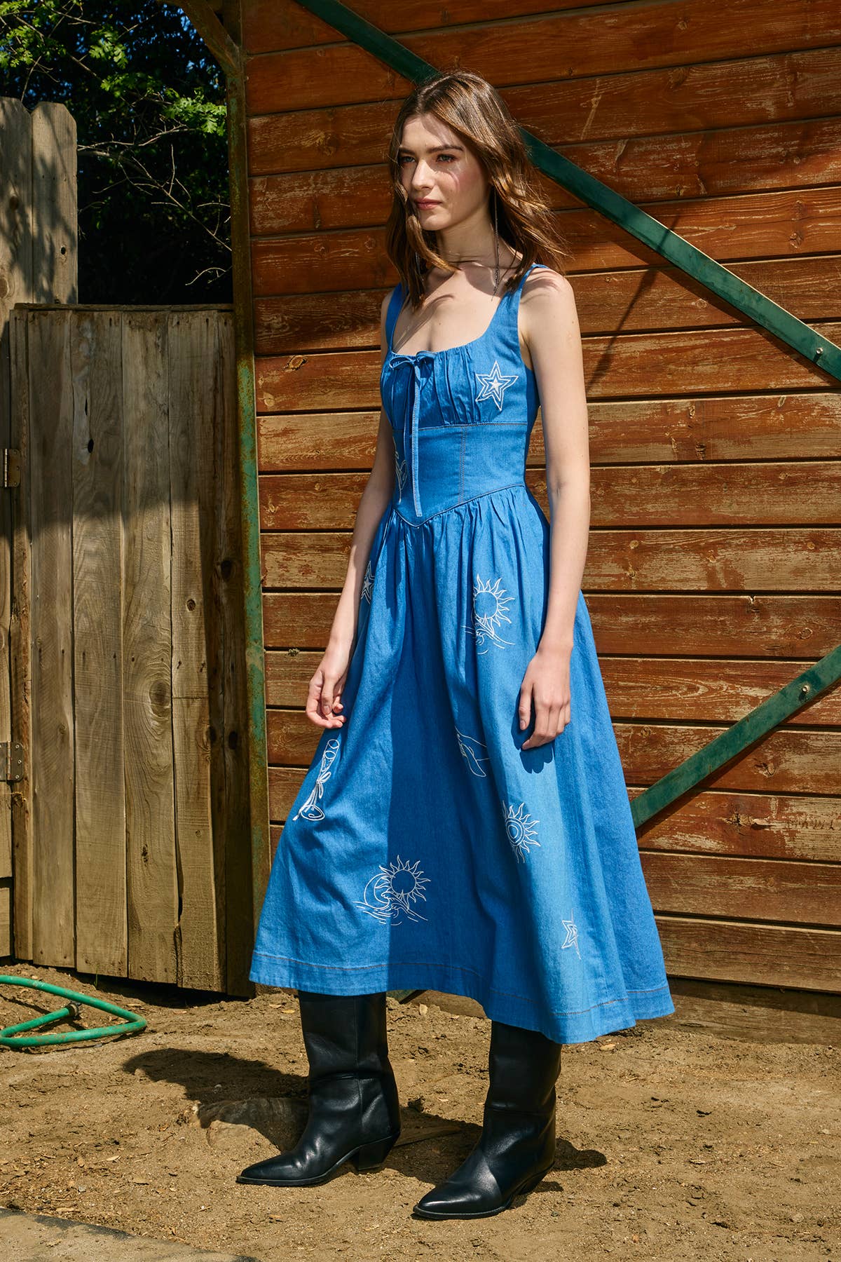 Denim Sundress with Embroidery - RD1175 : DENIM