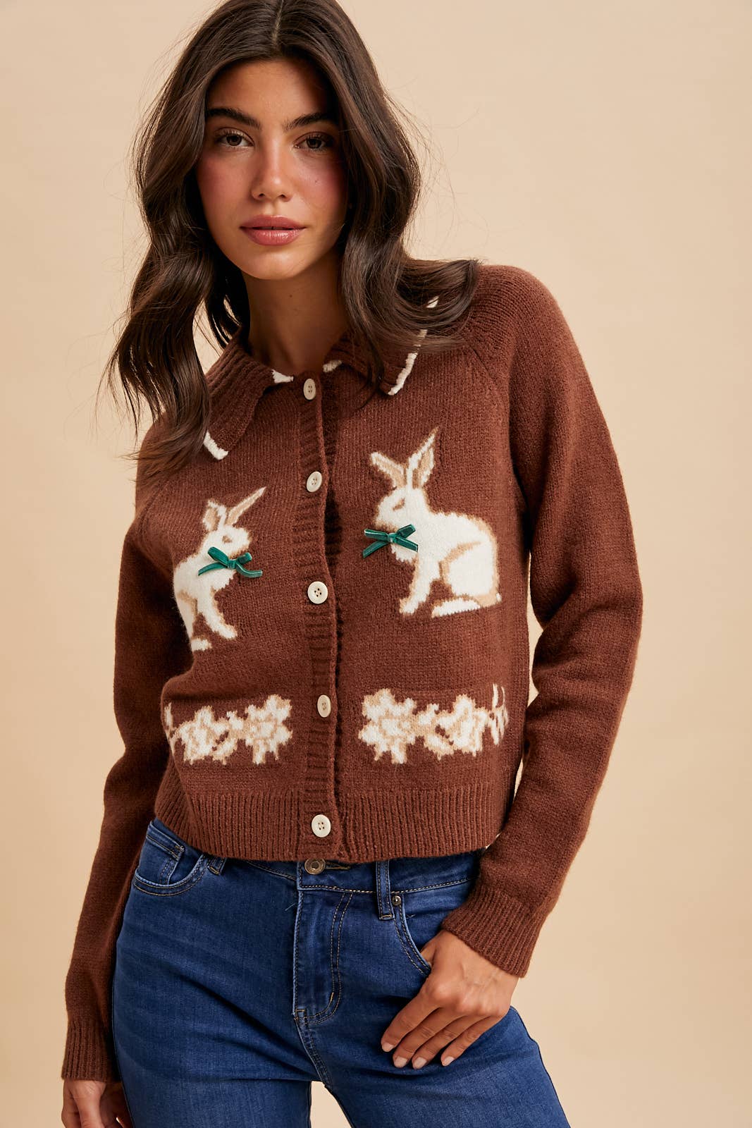 BUNNY INTARSIA KNIT CARDIGAN FEATURES: