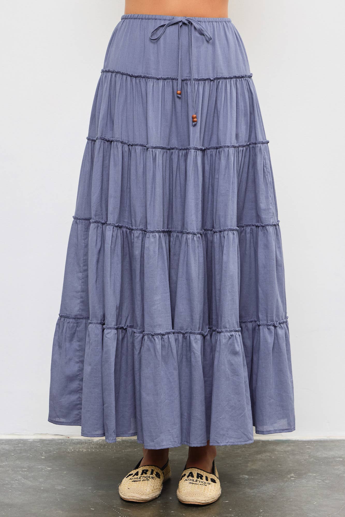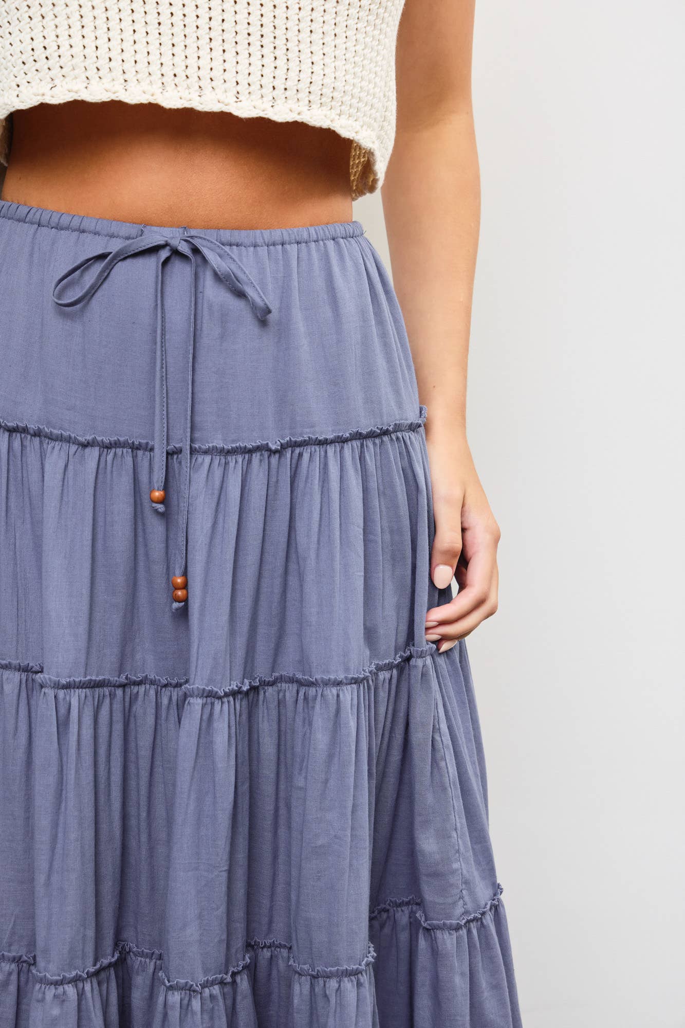 DRAWSTRING DETAIL TIERED MAXI SKIRT