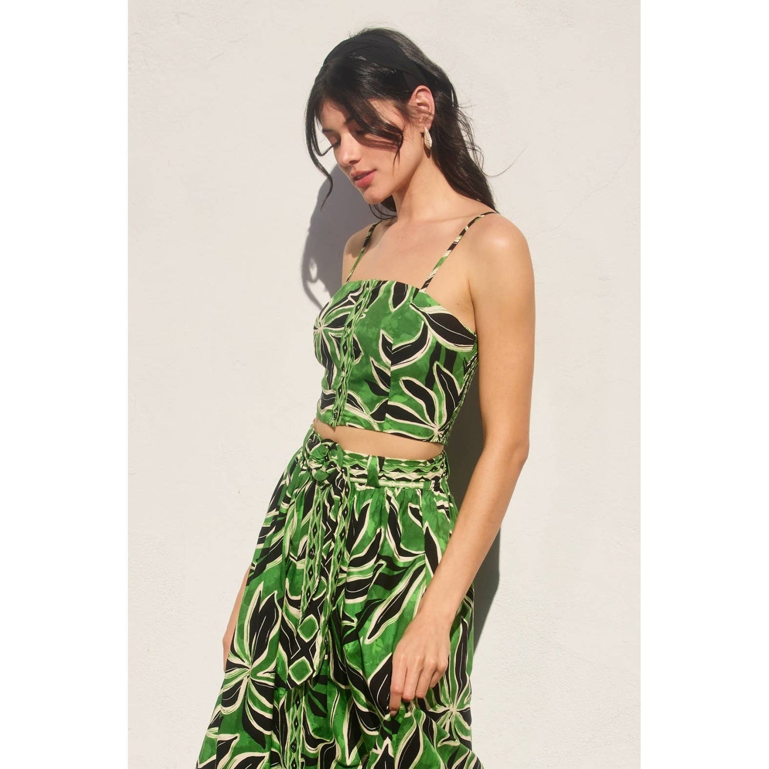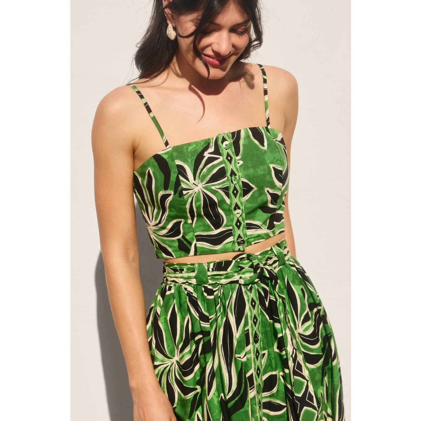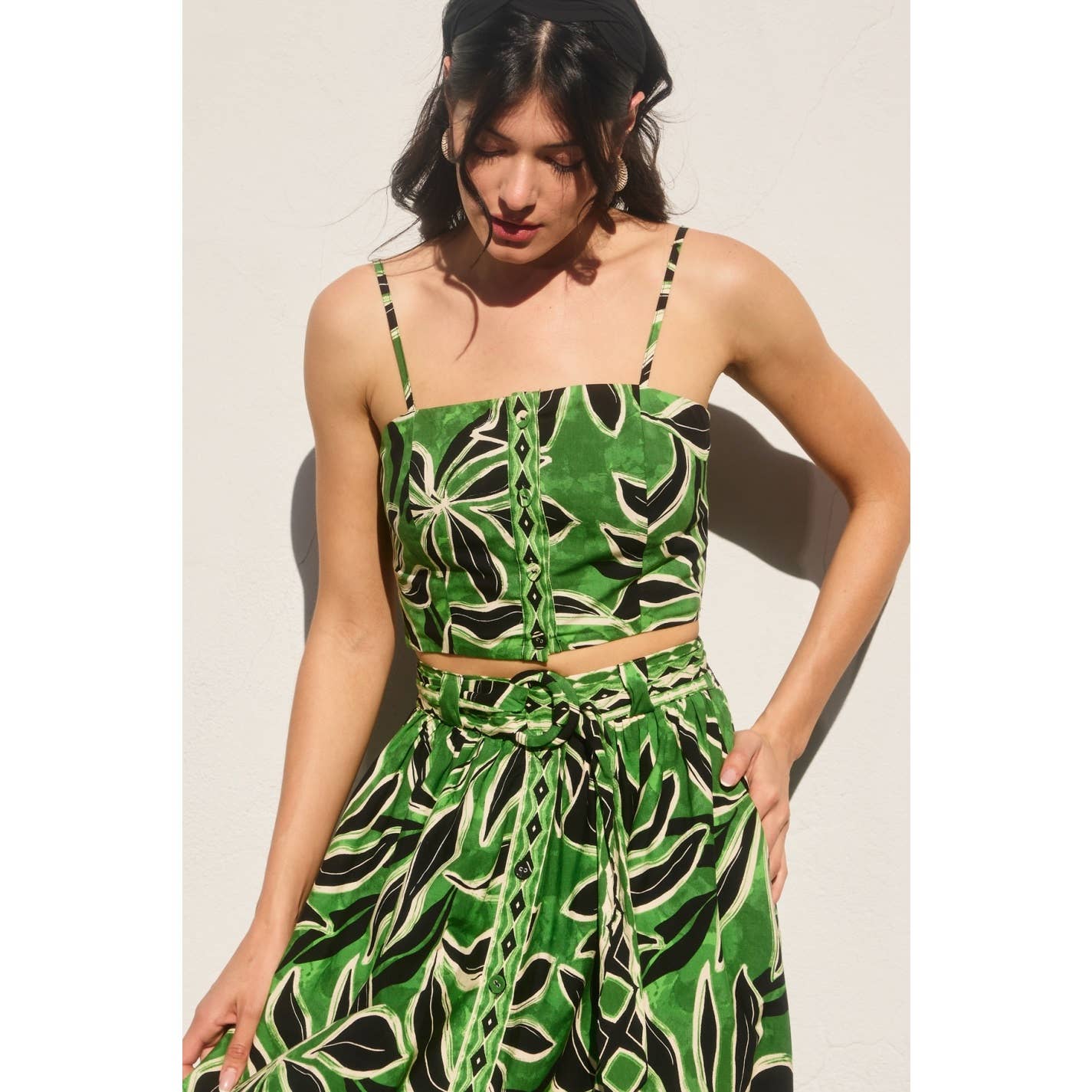 Elegant Perception Button Front Crop Top: BANANA PALM / FT12806-P1875