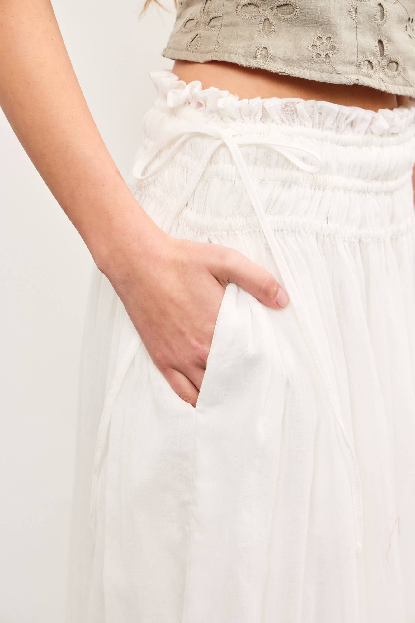 EYELET LACE HEM SIDE TIE SKIRT