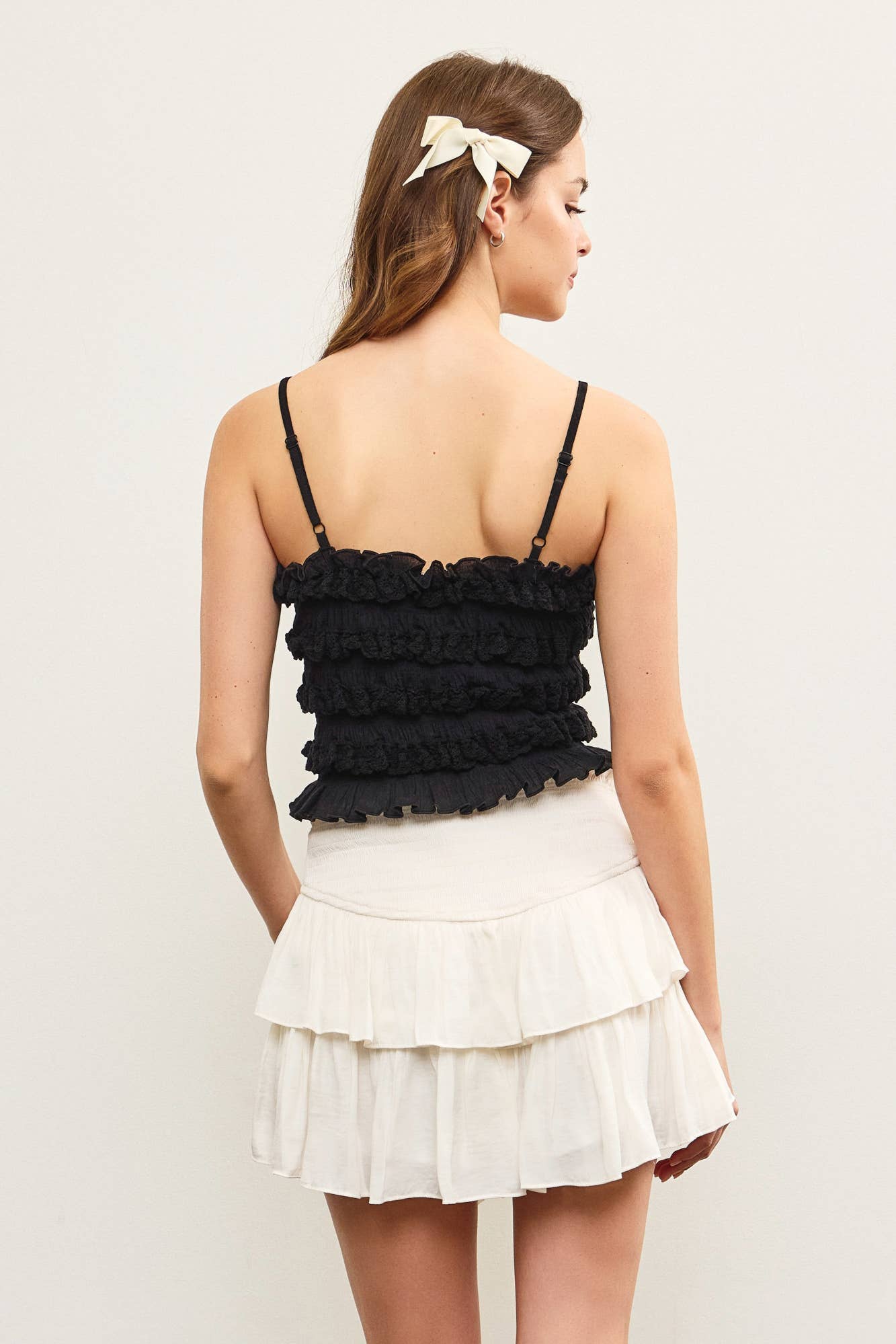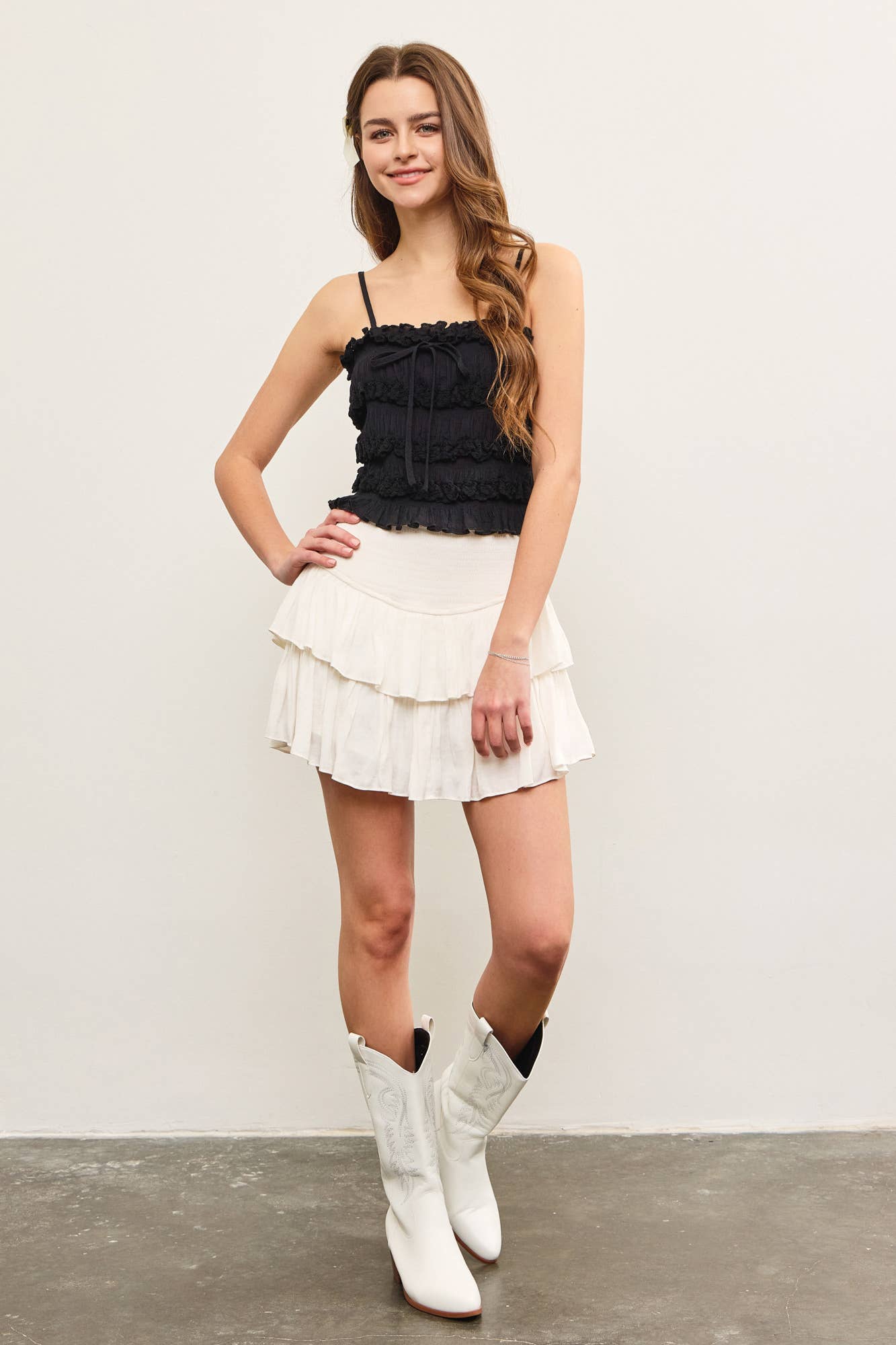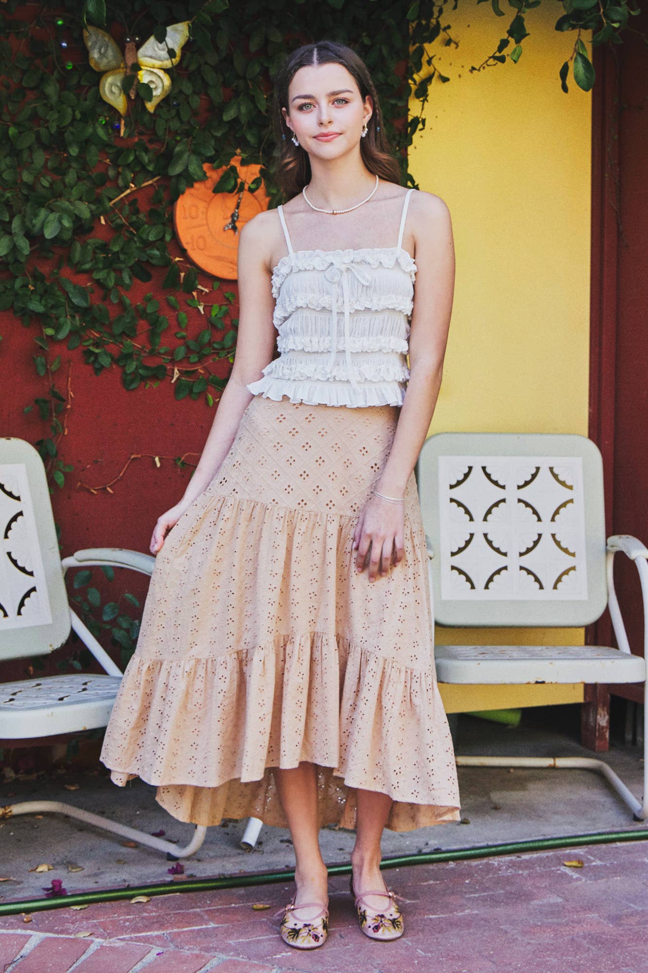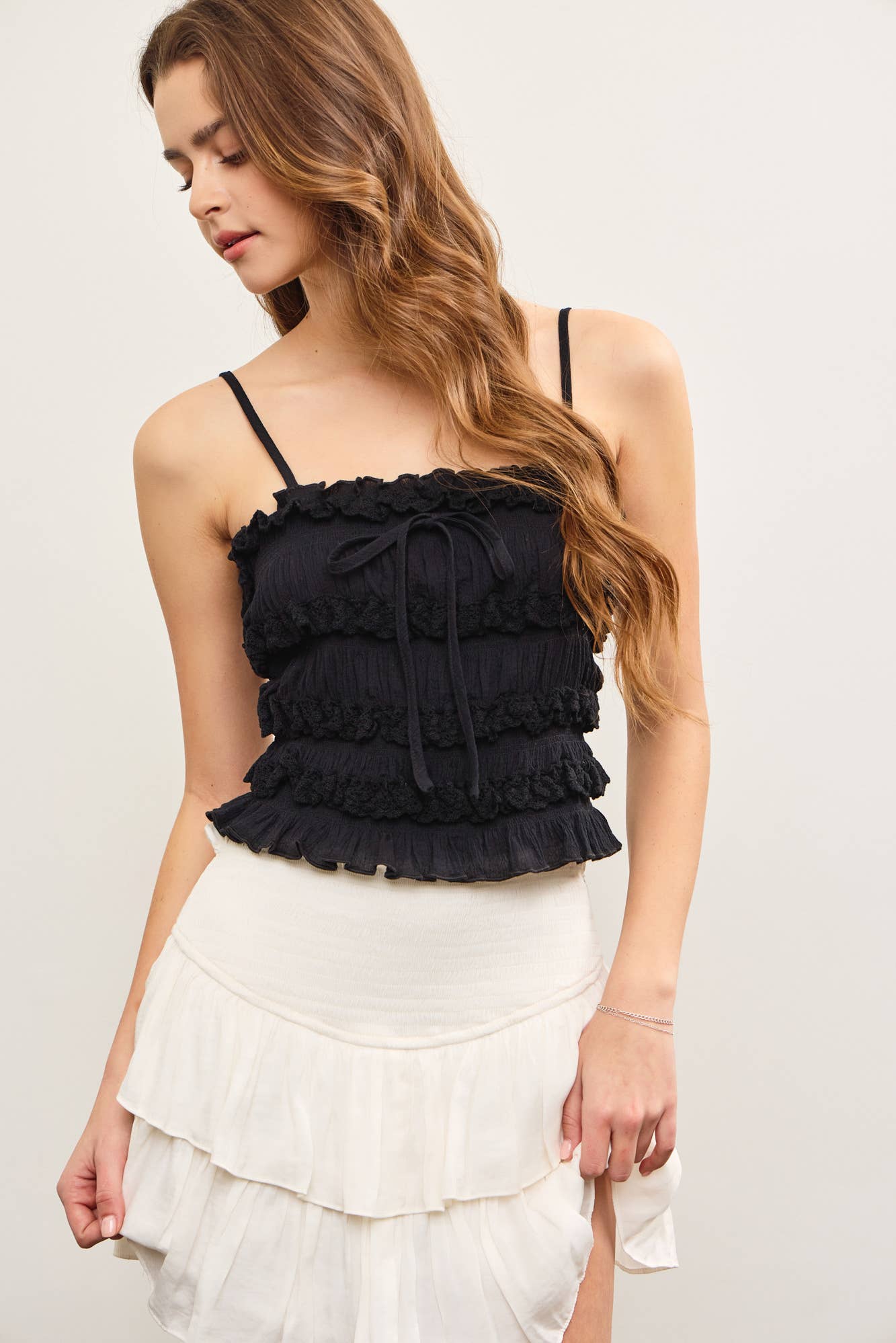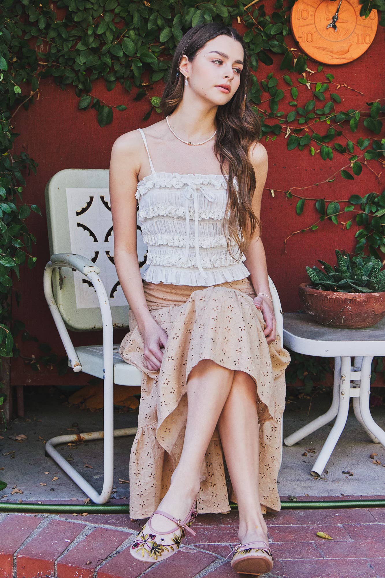 EYELET LACE RUFFLED CAMI TOP : SNOW WHITE / S24647
