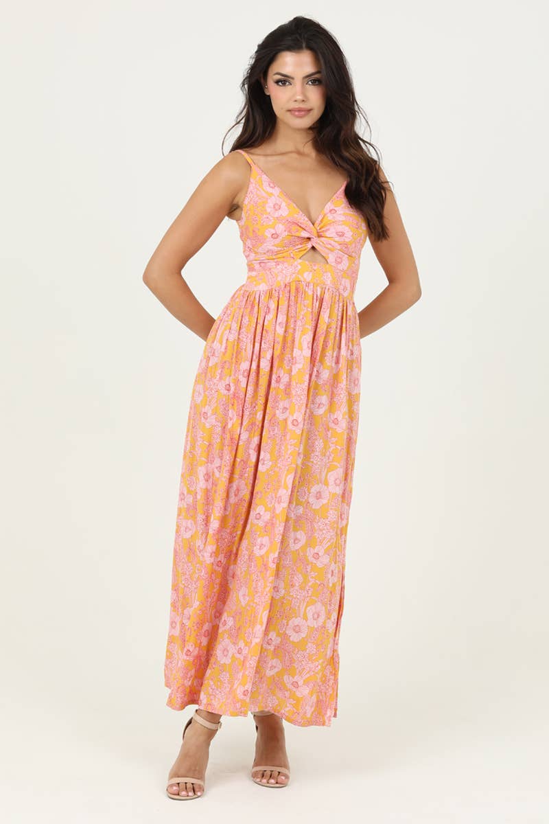 V NECK TWIST FRONT CUT OUT MAXI DRESS