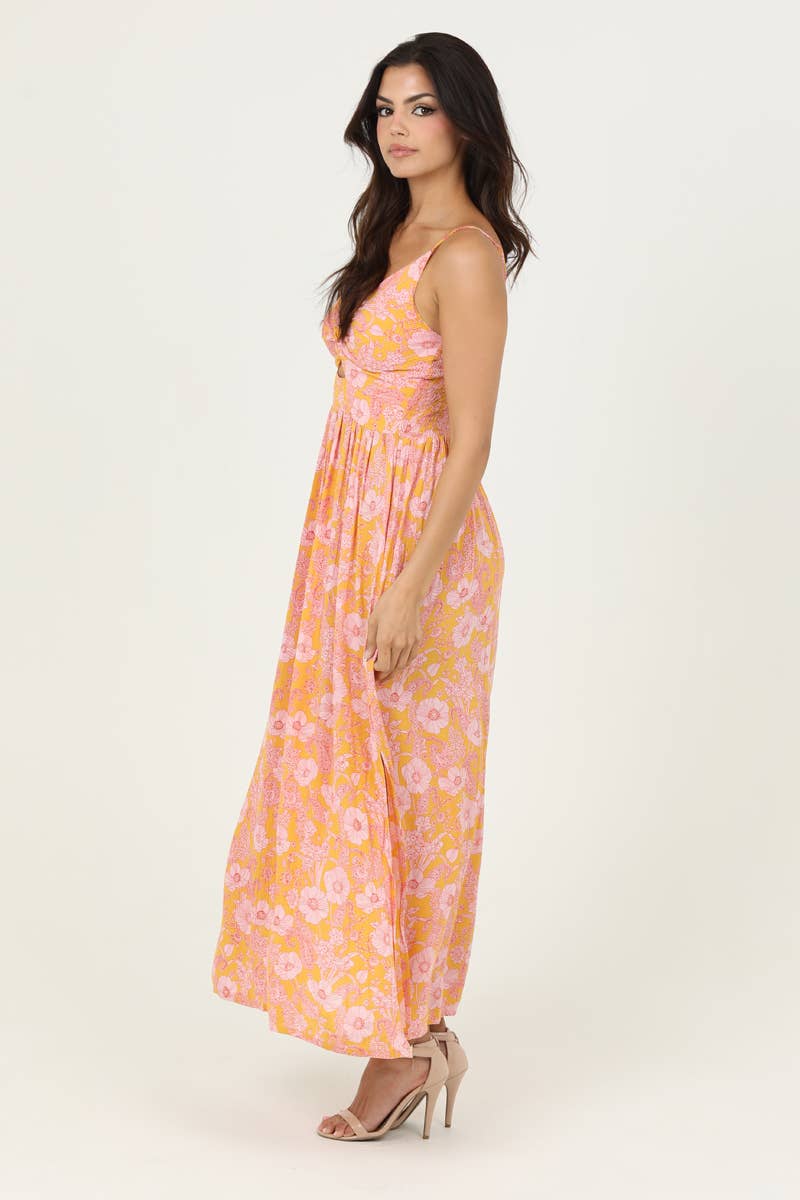 F4B48-A798 V NECK TWIST FRONT CUT OUT MAXI DRESS