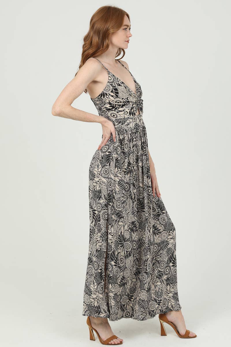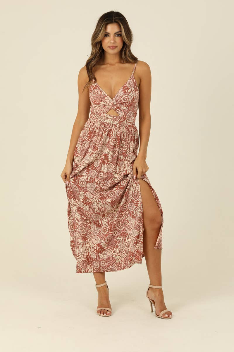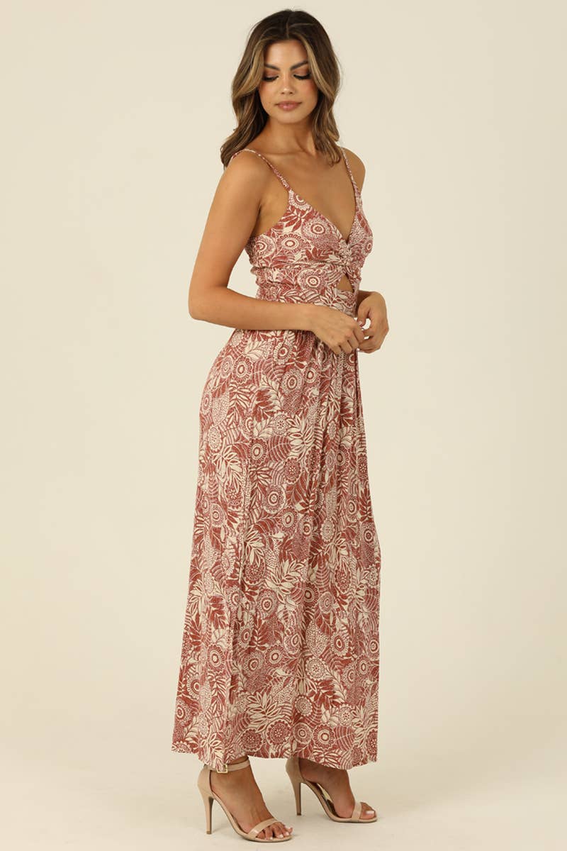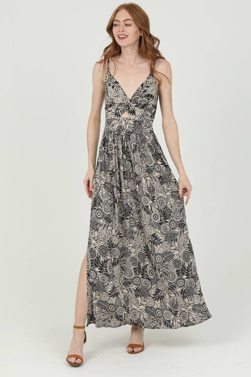 VNECK TWIST FRONT CUT OUT MAXI DRESS