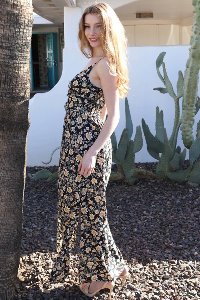 F4B48-W917 V NECK TWIST FRONT CUT OUT MAXI DRESS