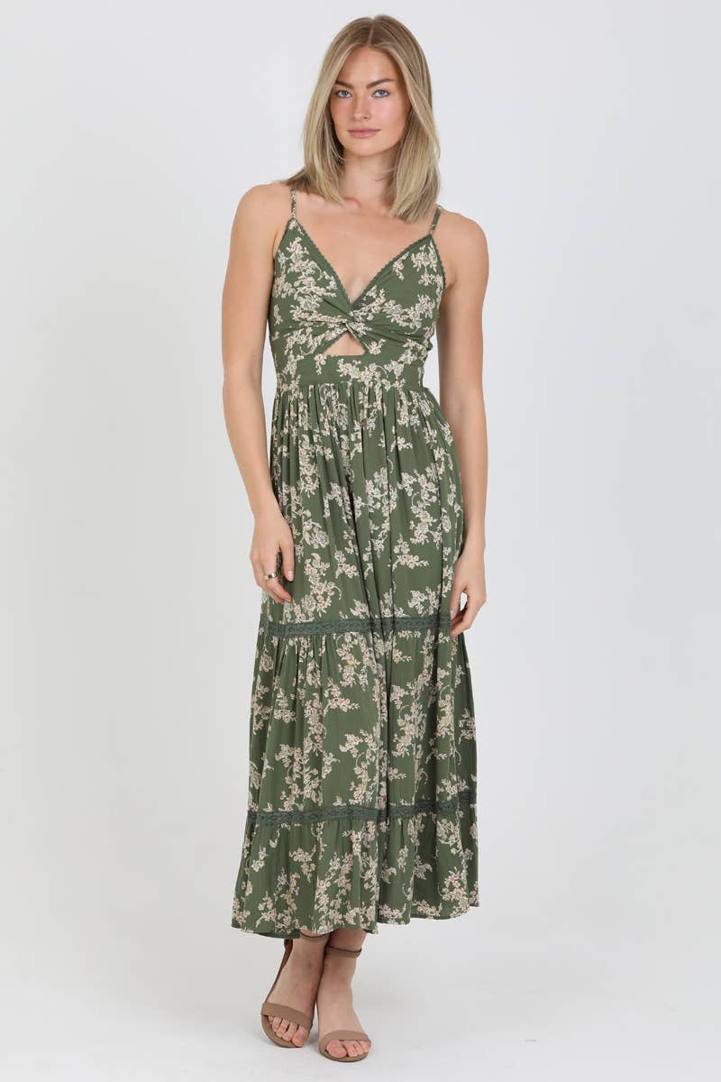 V NECK TWIST FRONT CUT OUT MAXI DRESS